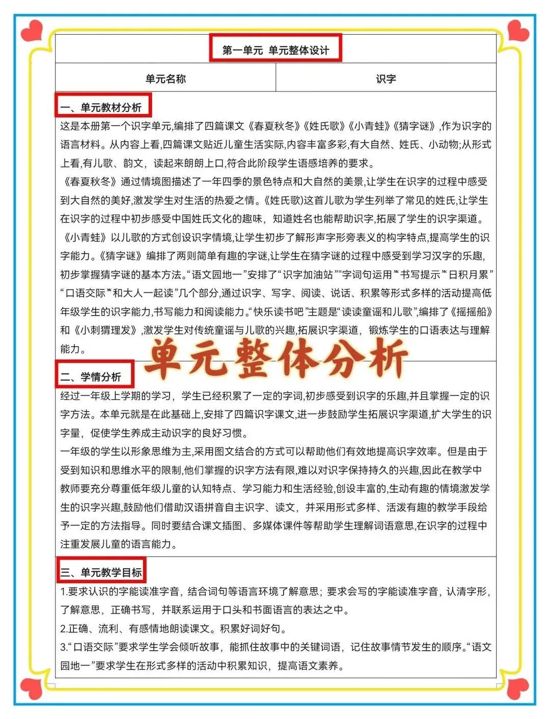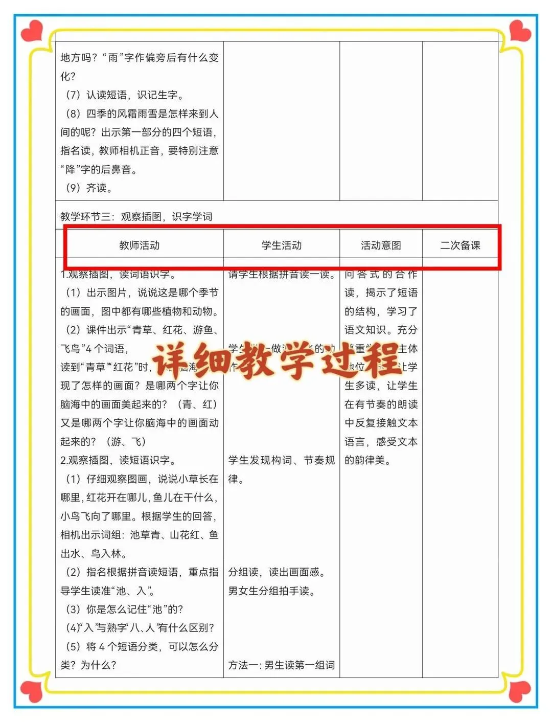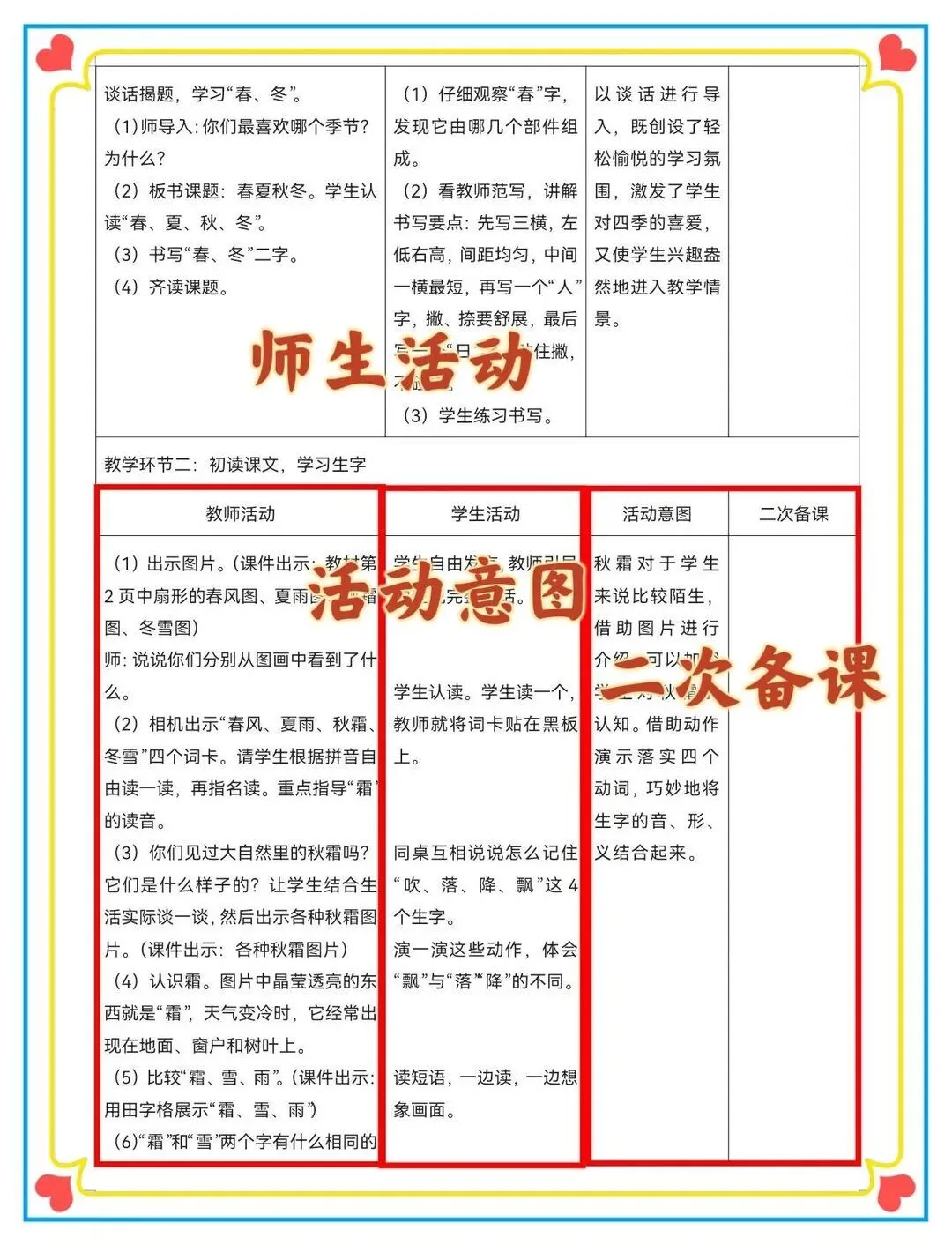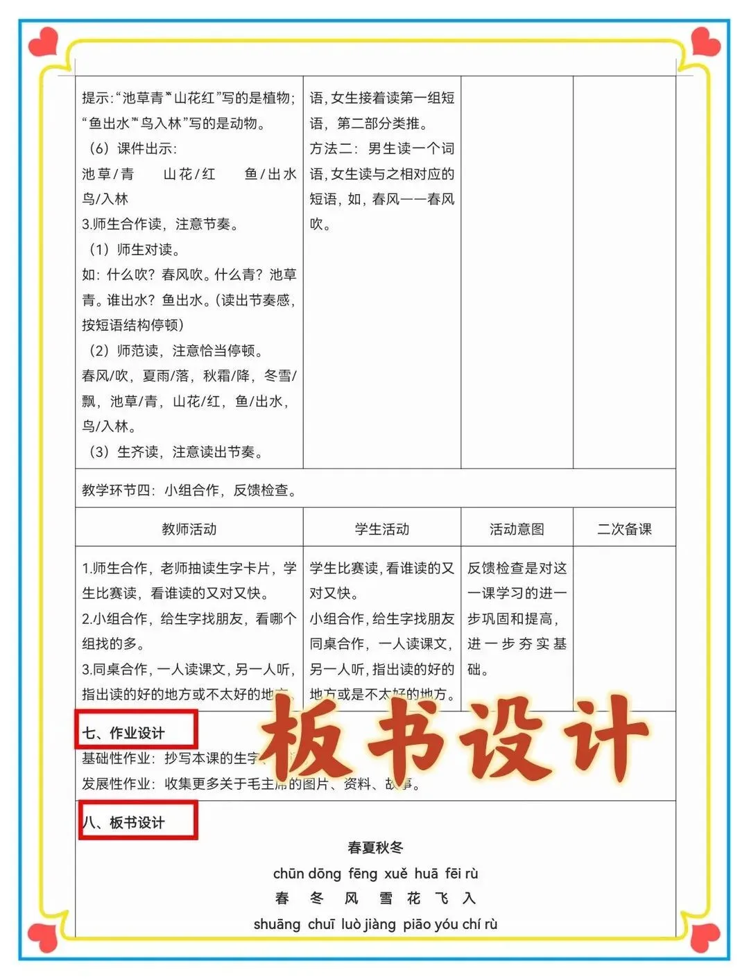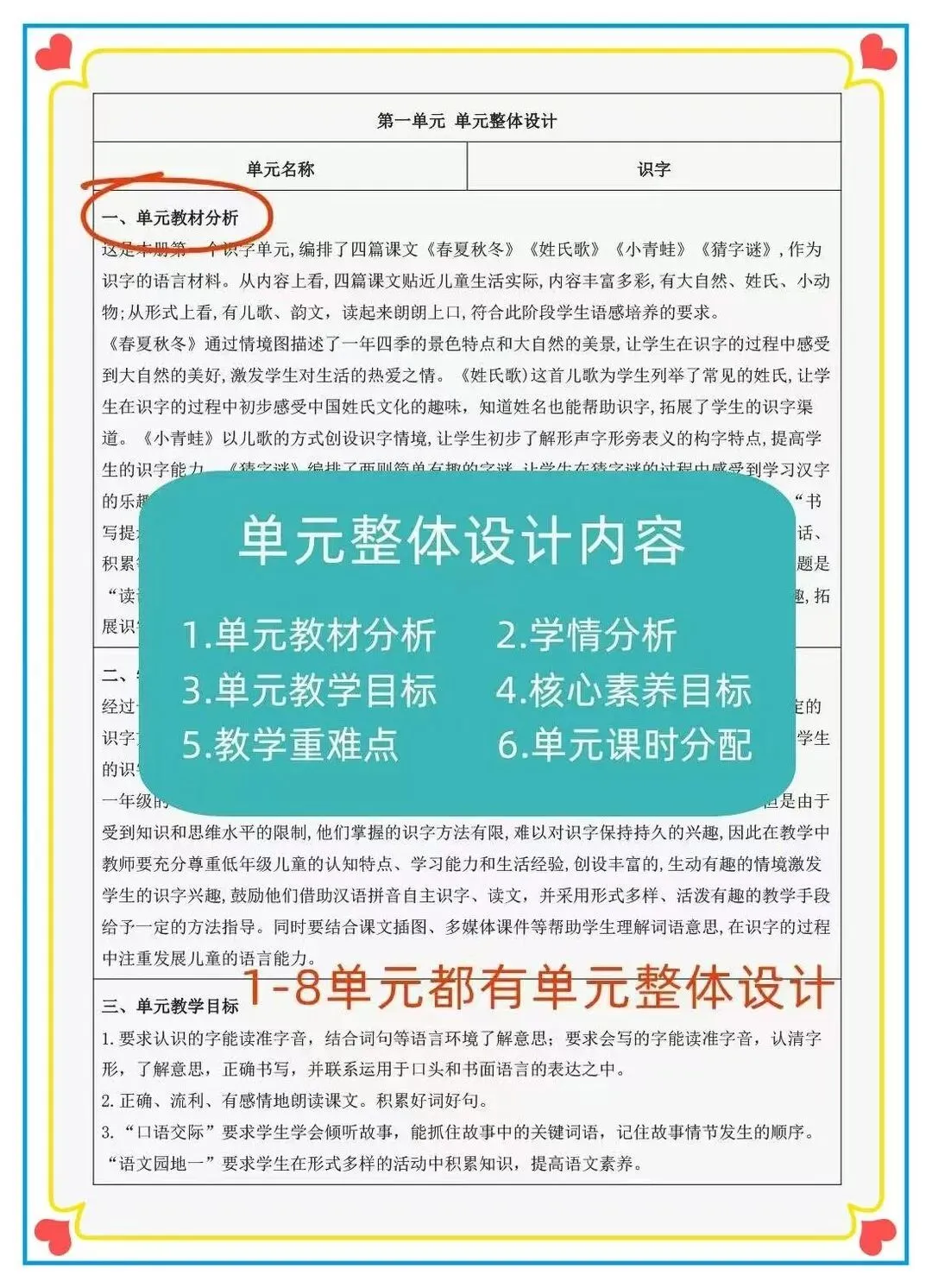 新课标大单元设计 师生双边活动,设计意图,二次备课 1-8单元都有