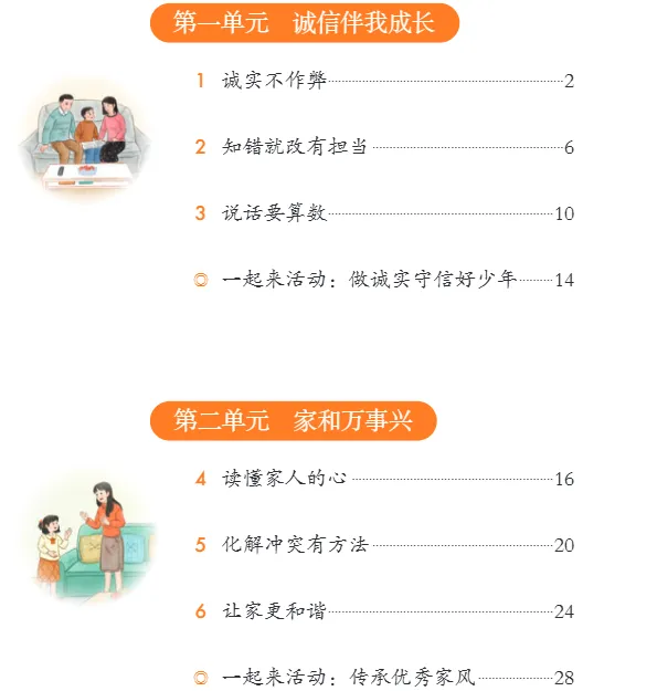 1.养成诚实守信、知错就改、说话算数的品质;学会关爱家人、化解家庭冲突、传承优秀家风。