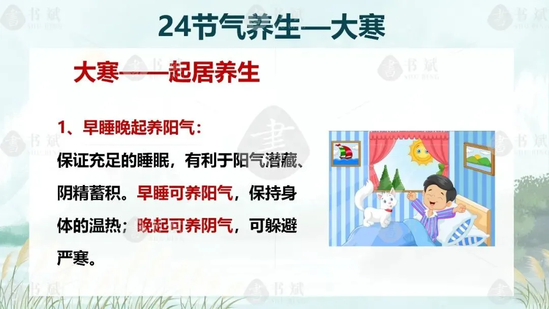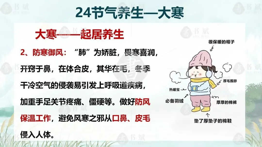 中医常说 “去寒就温,无泄皮肤”,大寒养生,比起盲目进补、跟风锻炼,更要懂得避寒护阳、守住根本。这份课件,就带着大家避开寒冬养生误区,掌握贴合日常的保暖、饮食、起居技巧,用温柔的方式呵护身体。