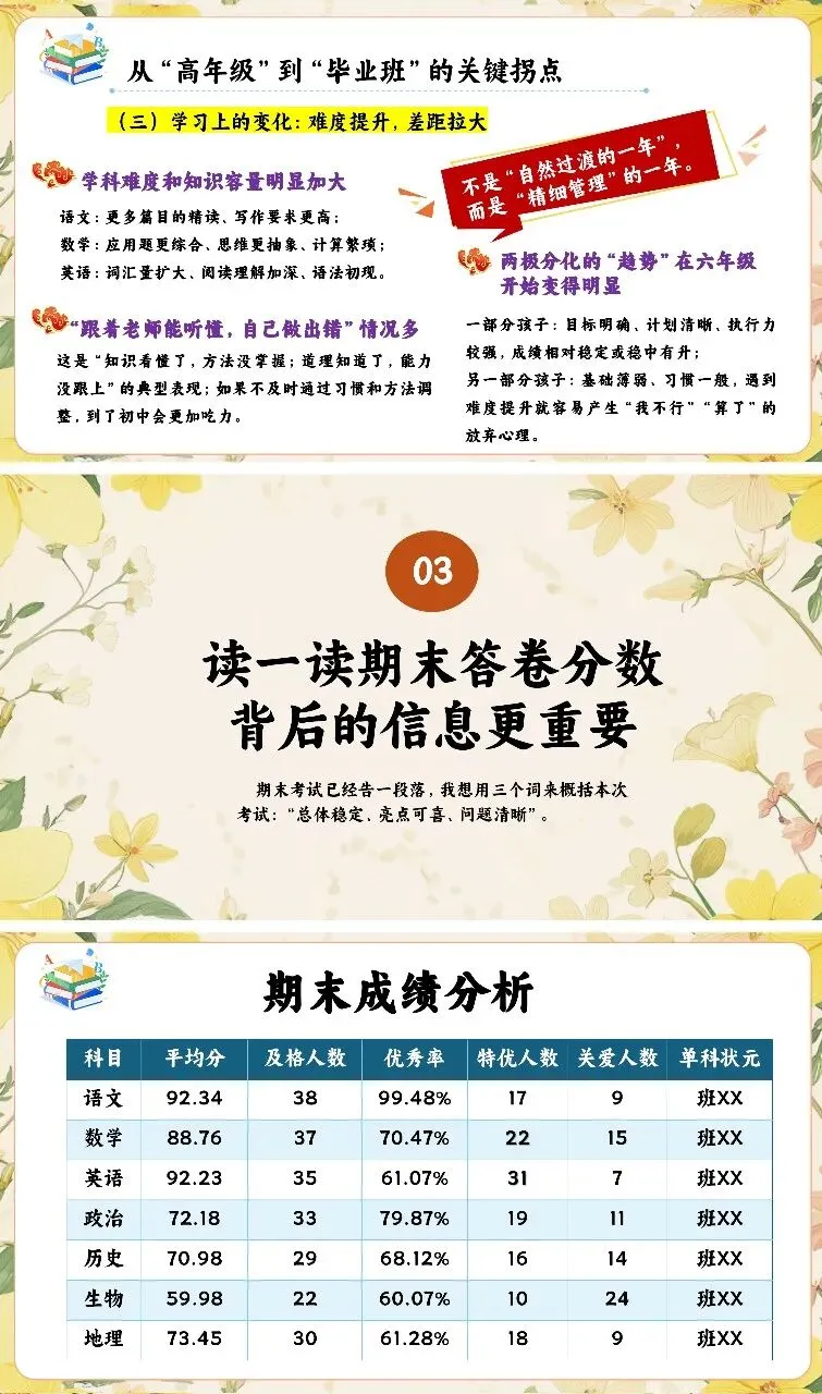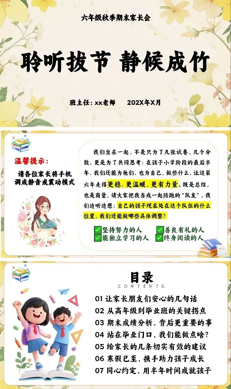 👉【六年级】语文家长会PPT 课件+发言稿:繁花似锦,未来可期