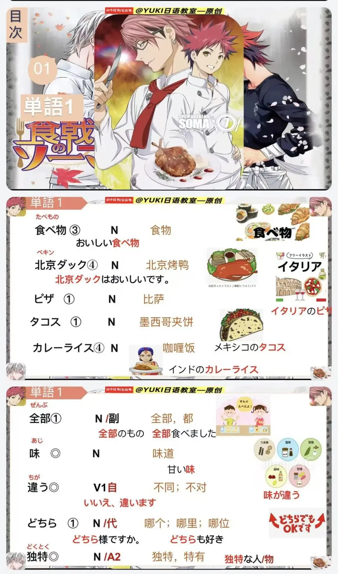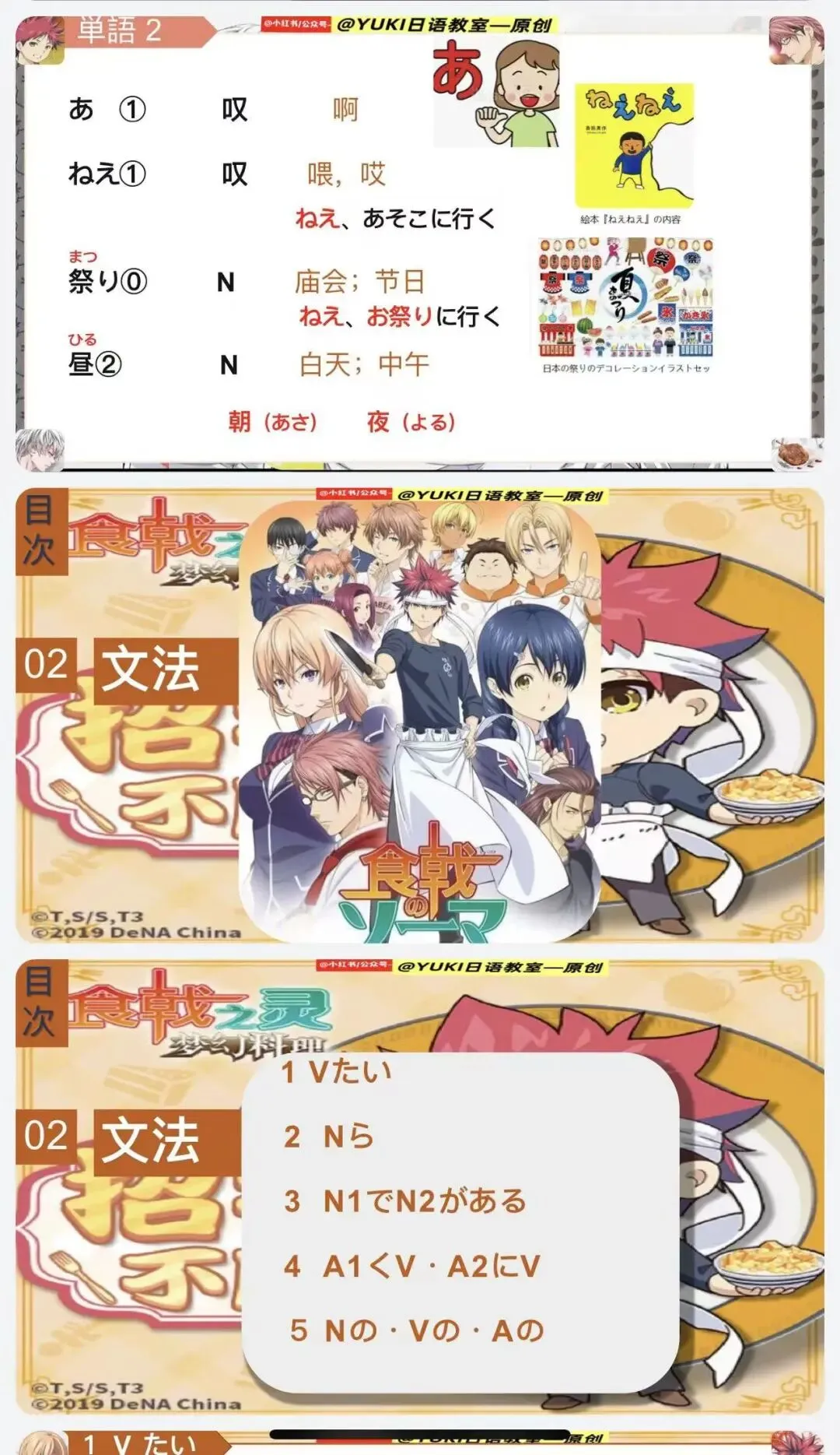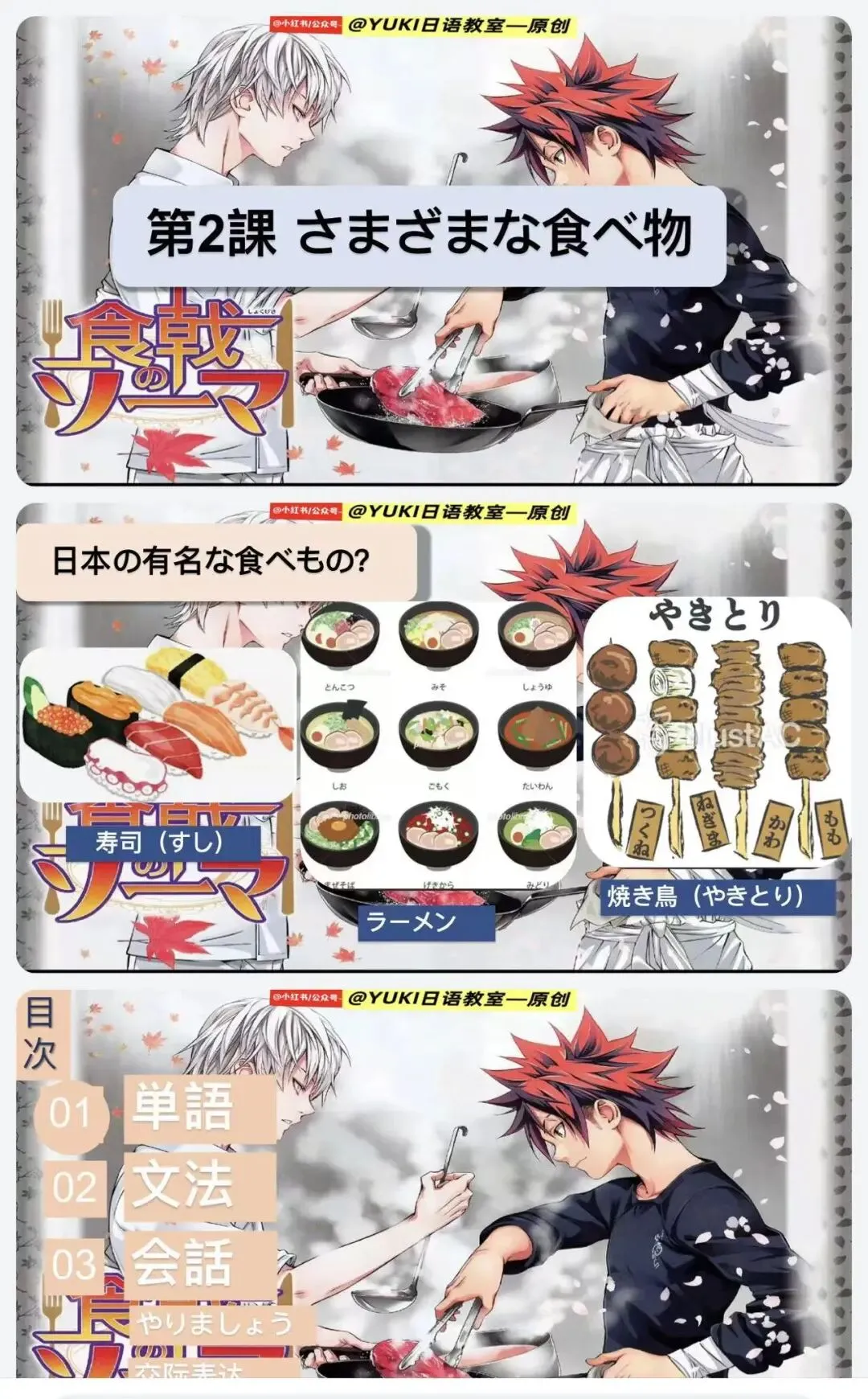 新版人教日语八年级动漫版课件第2课(食戟之灵--动漫版课件:)-为原创课件由-@公众号--YUKI日语教室 制作。本课件未授权给任何人进行商用,二次引流和销售,盗版课件属于违法侵权行为,请大家谨防假冒,谢谢支持原创日语资料的制作!