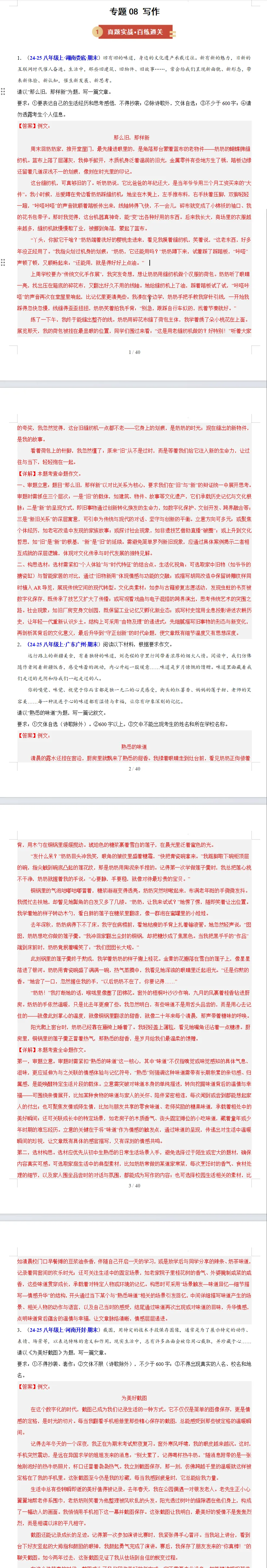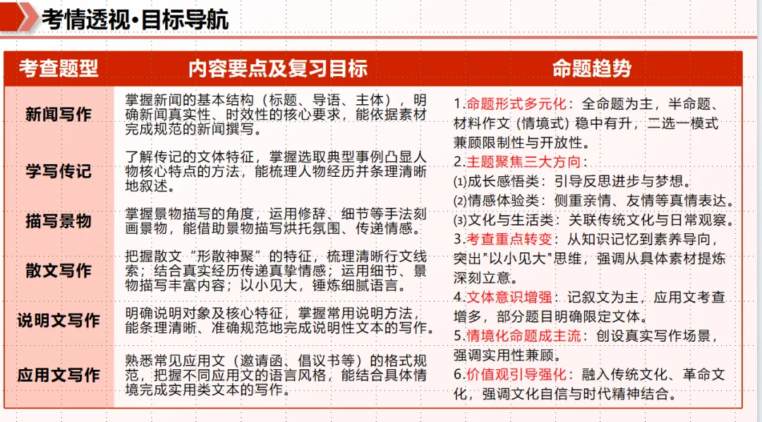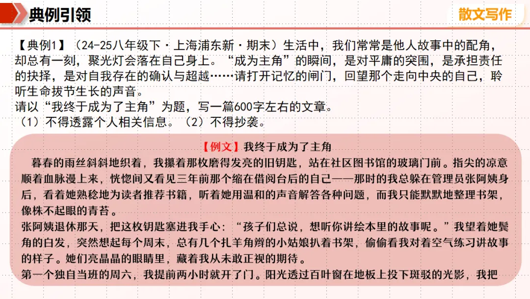 【写在前面的话】今天是期末备考专栏最后一期内容,明天我的学生就要期末考试了,今天我带他们把教材过了一遍,作文复习讲了一些预测题目、命题方向和范文赏析,还有母题作文改写的技巧,考场答题注意事项。希望他们明天考试能超常发挥,写好作文,考出自己理想的成绩。