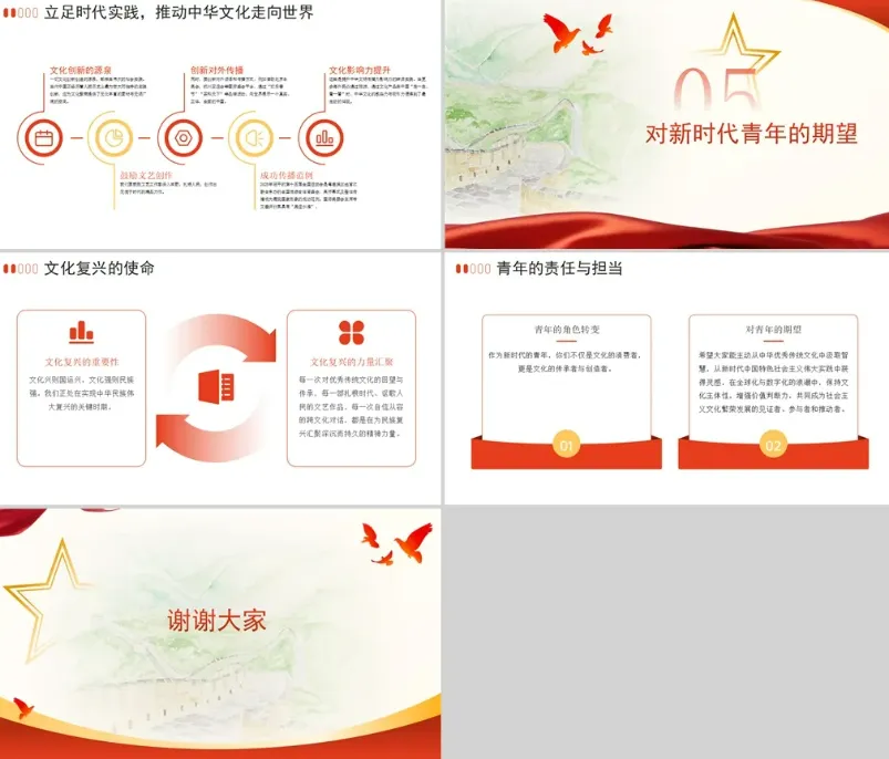 今天要分享的课件是:《党课以思政引领力推动社会主义文化繁荣发展PPT课件》,讲稿字数:2846字,党课ppt页数:20页。价值导向功能在文化建设中具有根本性的引领作用。文化繁荣并非自发形成,需要明确的价值内核为其定向导航。当社会主流价值理念深度融入文艺创作、文化传播与公共文化服务各环节时,能够确保文化产品既满足多元审美需求,又传递积极向善的精神力量。这种引领不是简单的内容审查,而是通过评奖机制、资助政策、平台导向等市场化与行政化手段,引导创作者自觉将社会责任融入艺术追求,使文化生态在保持活力的同时不偏离健康发展的轨道。