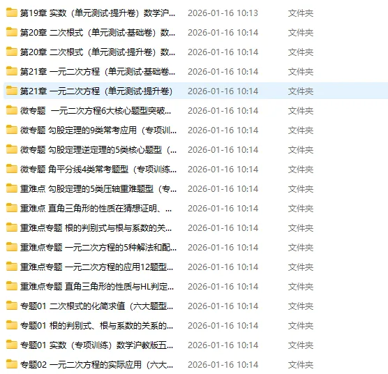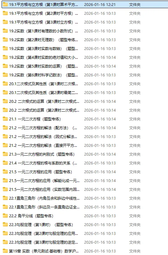 沪教版(五四制)(2024)初中数学八年级上册教材涵盖数与代数、图形与几何以及综合与实践三个领域,共四章内容,分别是第 19 章实数、第 20 章二次根式、第 21 章一元二次方程、第 22 章直角三角形,还有综合与实践活动。各章节内容紧密联系,层层递进,形成一个完整的知识体系,为学生后续学习更复杂的数学知识奠定坚实基础。