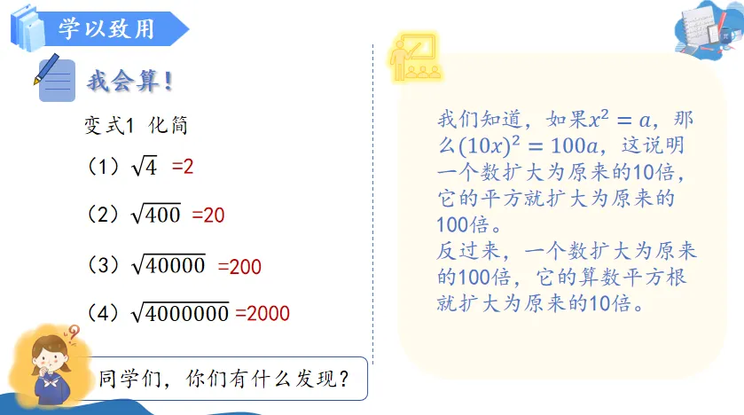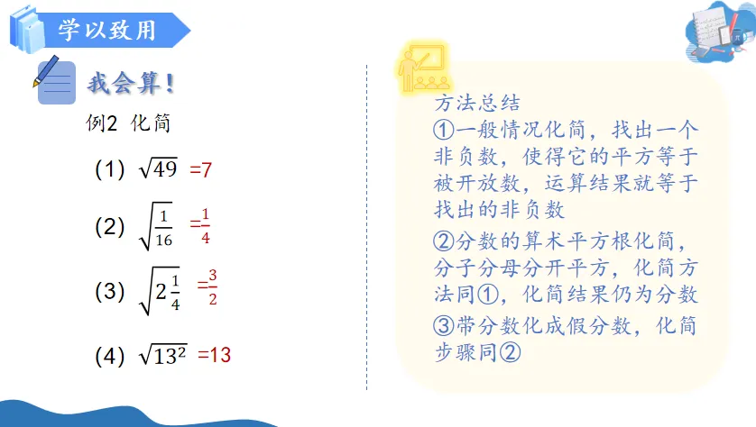 1.知识衔接紧密:教材内容与之前所学的有理数、整式等知识紧密相连,如实数是在有理数基础上的扩展,二次根式是整式运算的延伸,体现了知识的连贯性和系统性。