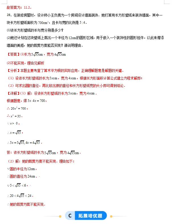 3.数学运算:熟练进行实数的运算、二次根式的化简与运算以及一元二次方程的求解,提高运算的准确性和效率,培养学生的运算能力。