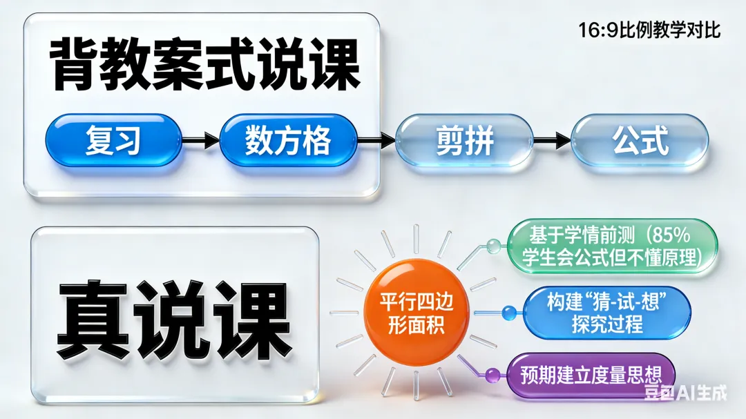 “理论术语堆砌”——生硬地套上“以学生为中心”、“培养核心素养”,却说不清为什么这个环节能体现这些理念。