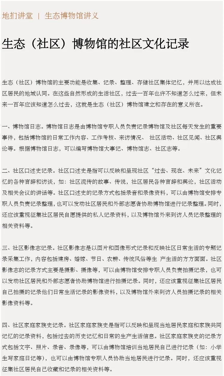 >生态博物馆讲义 | 生态(社区)博物馆的社区文化记录