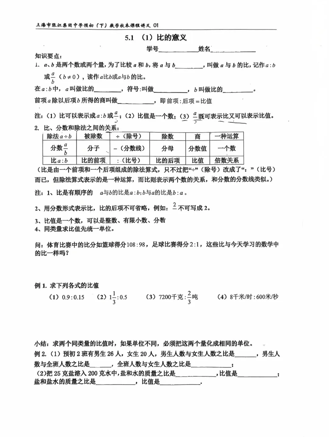 >6下数学,第5章“比和比例”(张集讲义01)