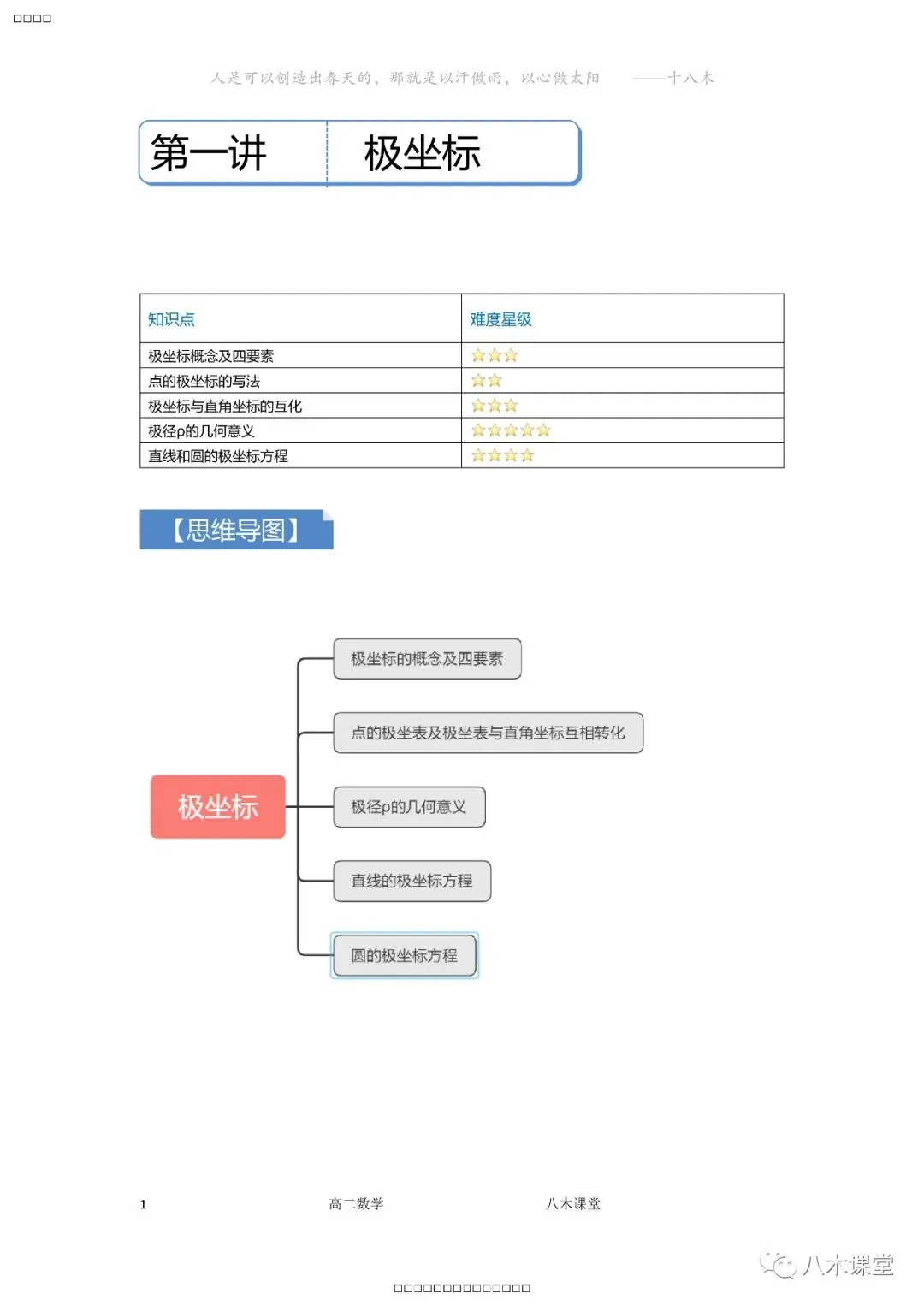 >高中数学讲义解析——10极坐标
