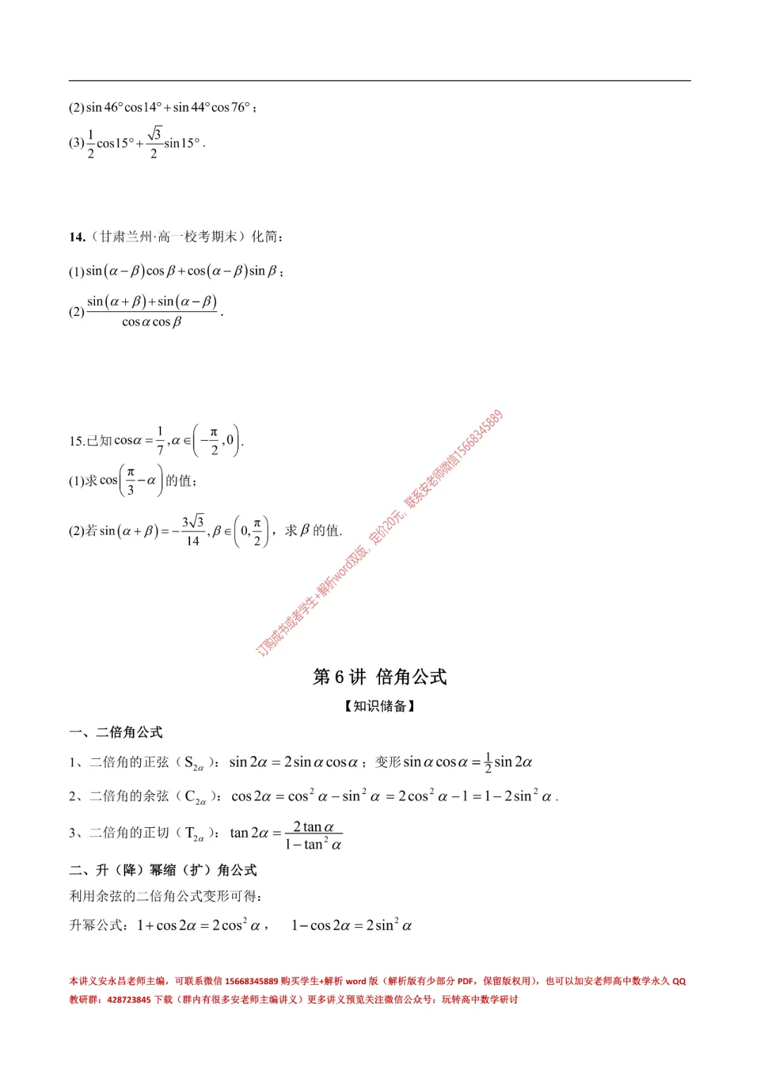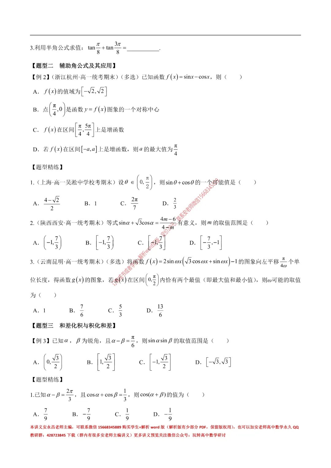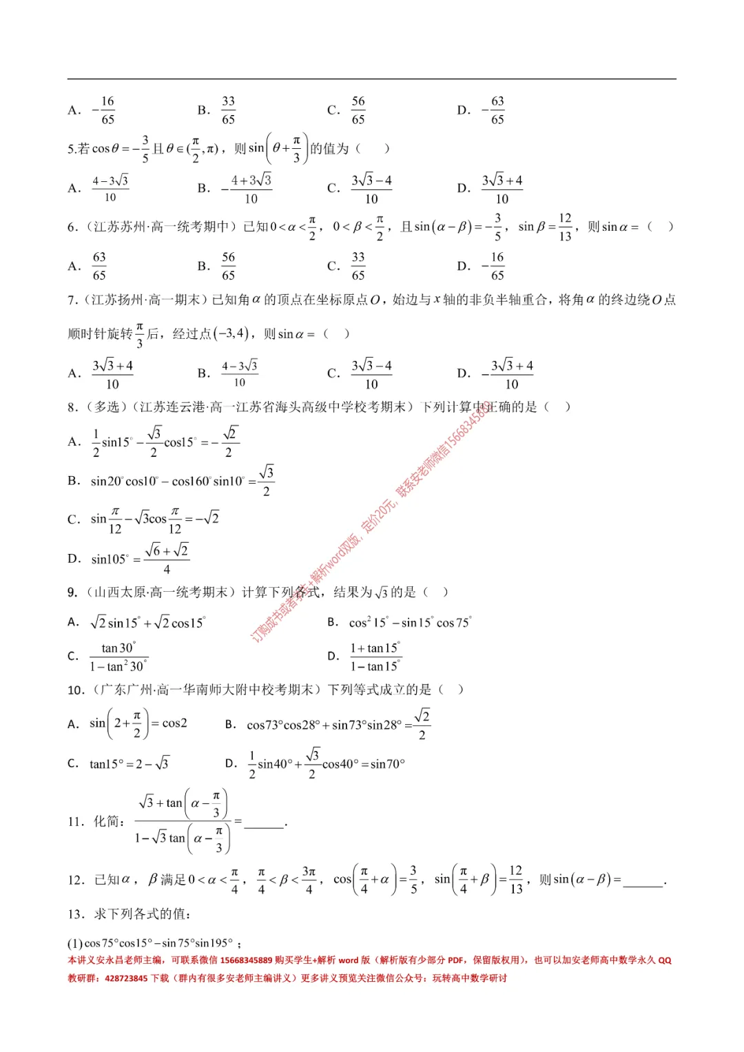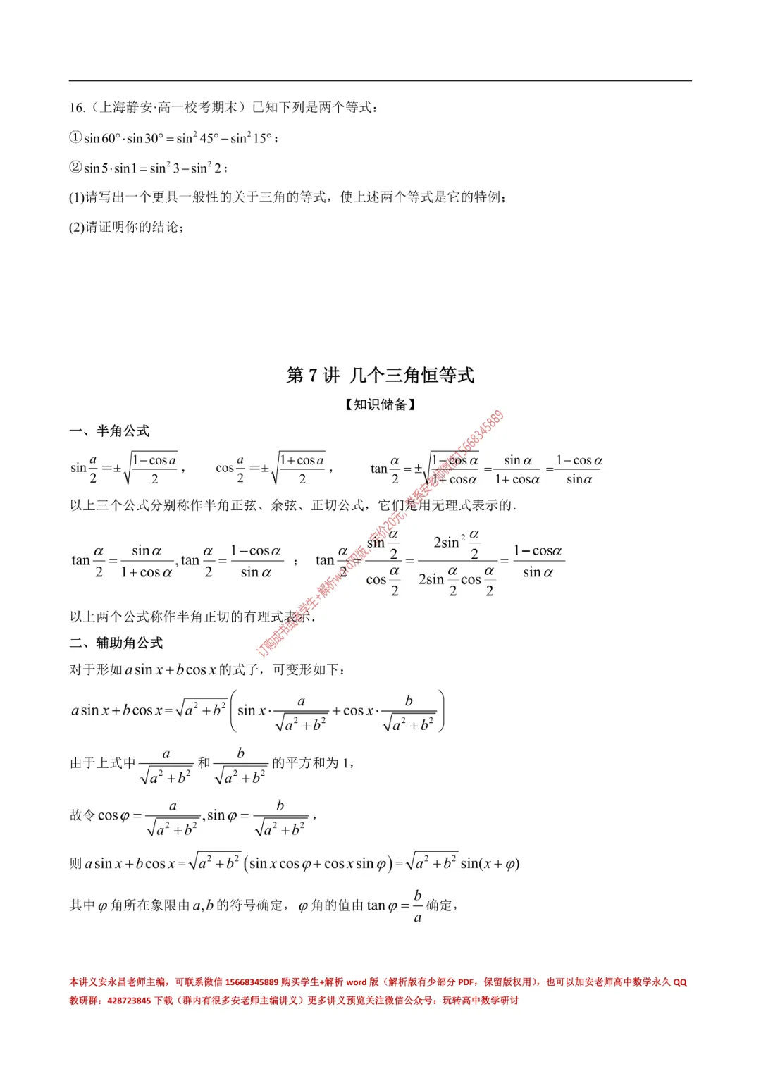 当前位置:首页>讲义>安老师高一寒假预习讲义(新苏教版)