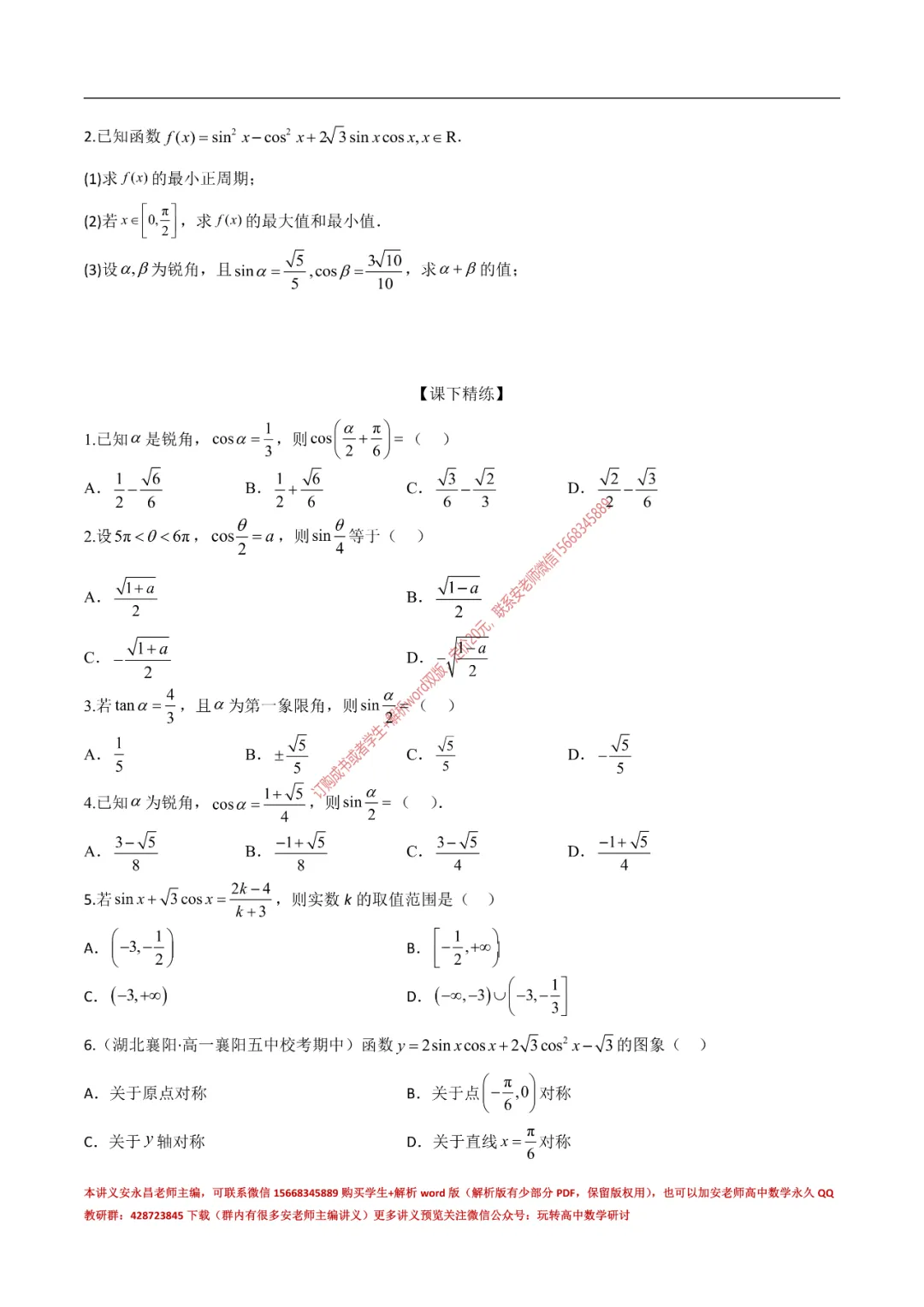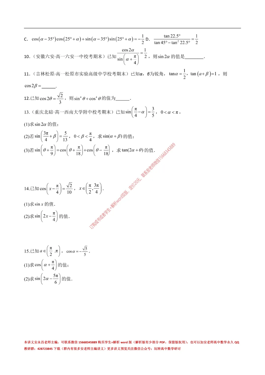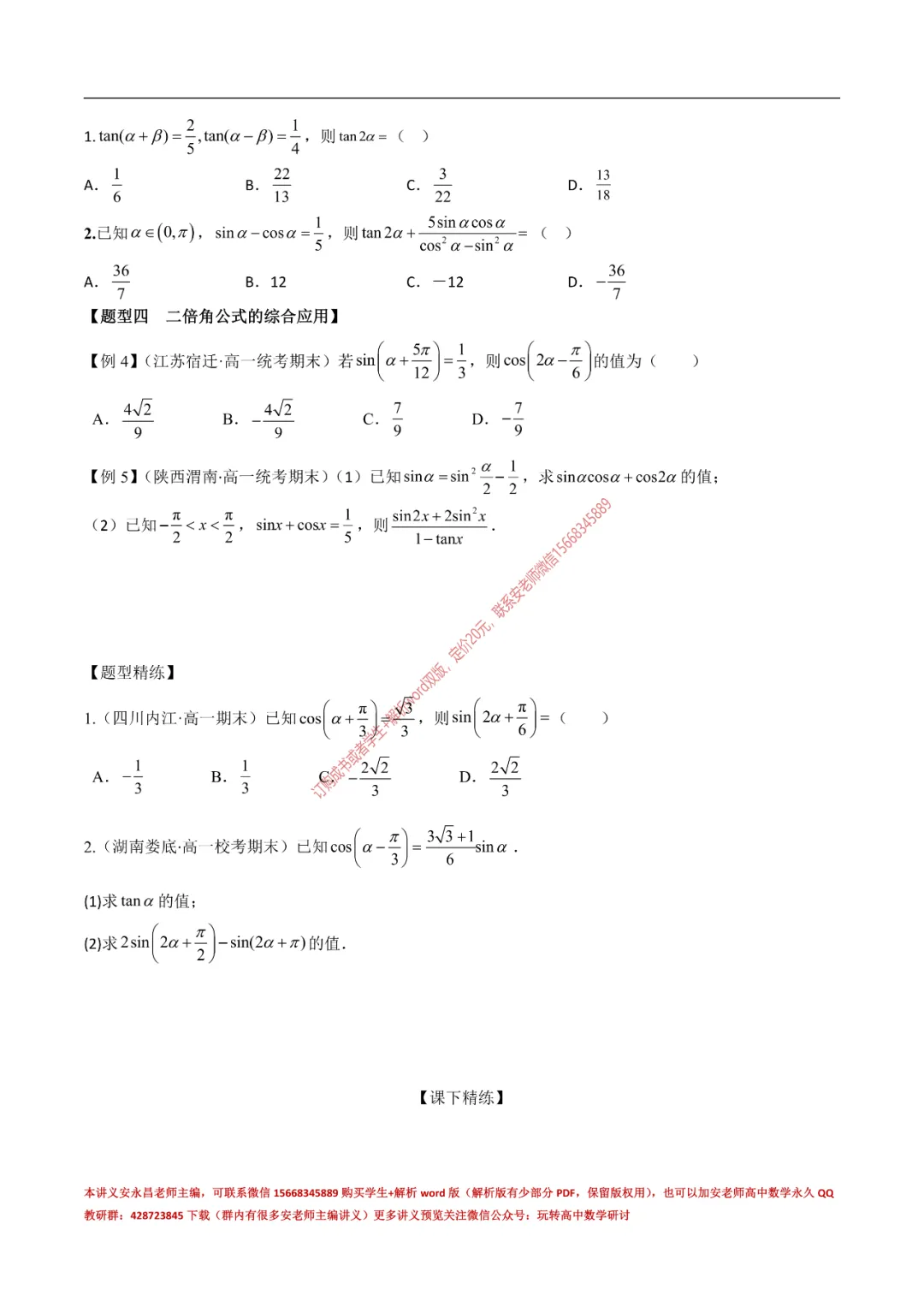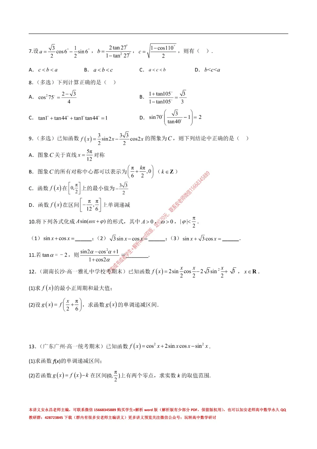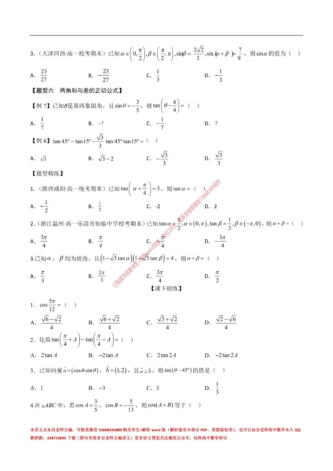 当前位置:首页>讲义>安老师高一寒假预习讲义(新苏教版)