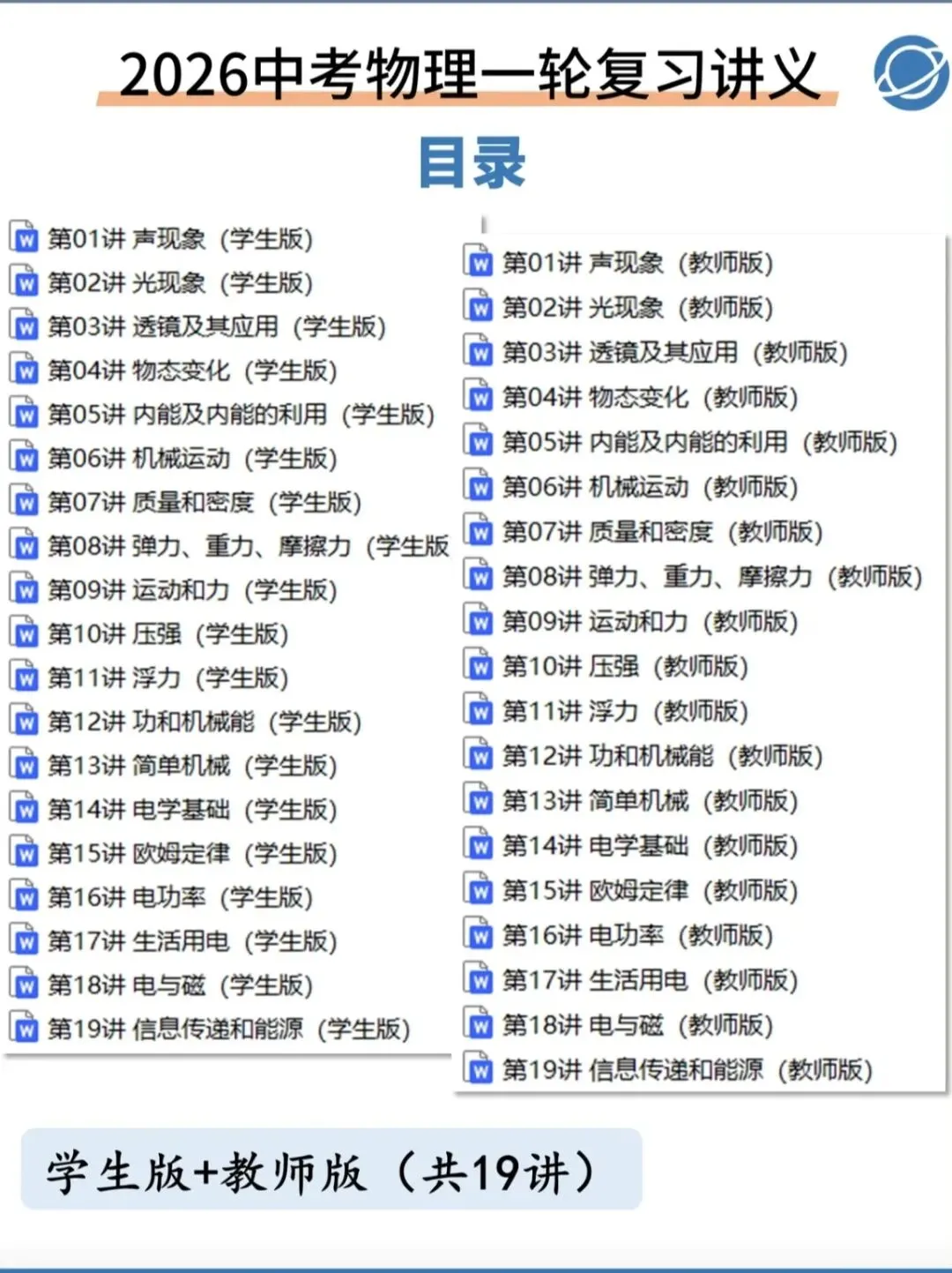 >2026中考物理第一轮总复习讲义(新版)