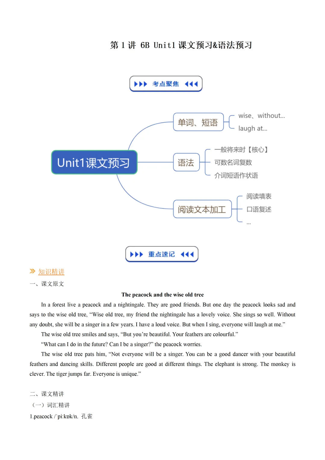 >寒假六年级下讲义——第1讲 6B Unit1课文预习&语法预习