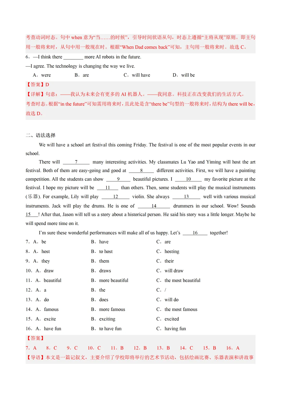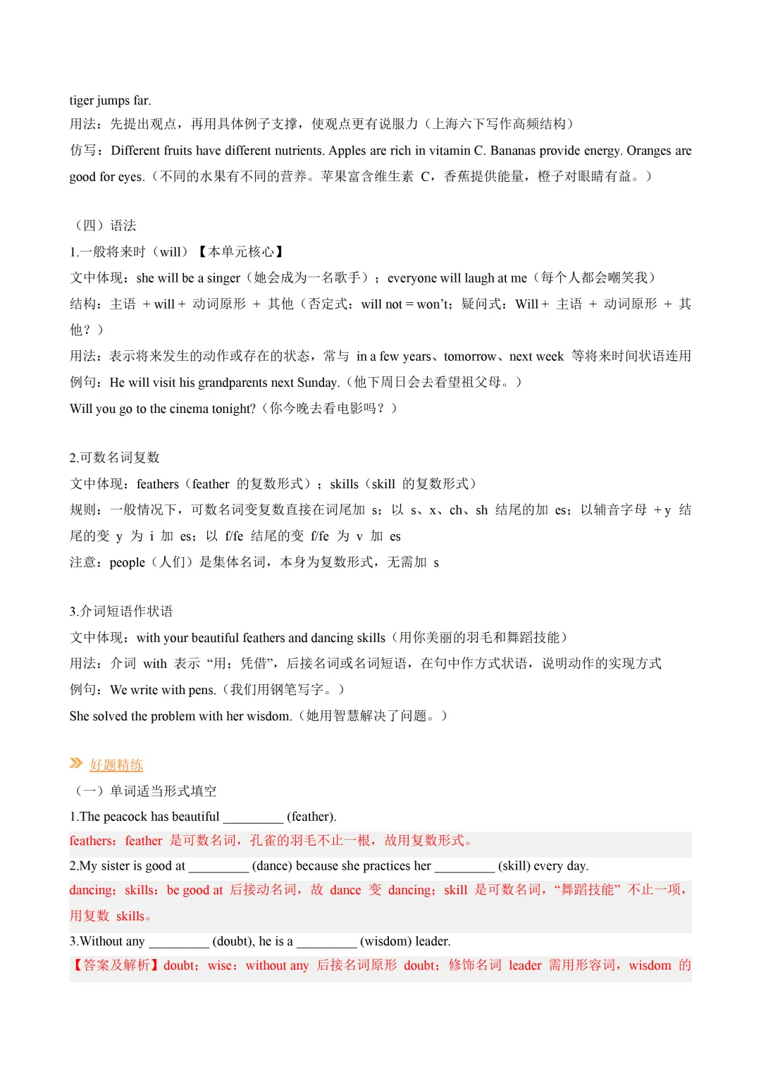 寒假六年级下讲义——第1讲 6B Unit1课文预习&语法预习