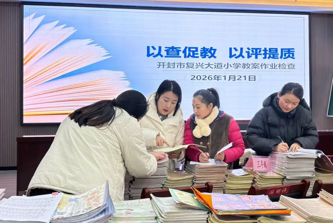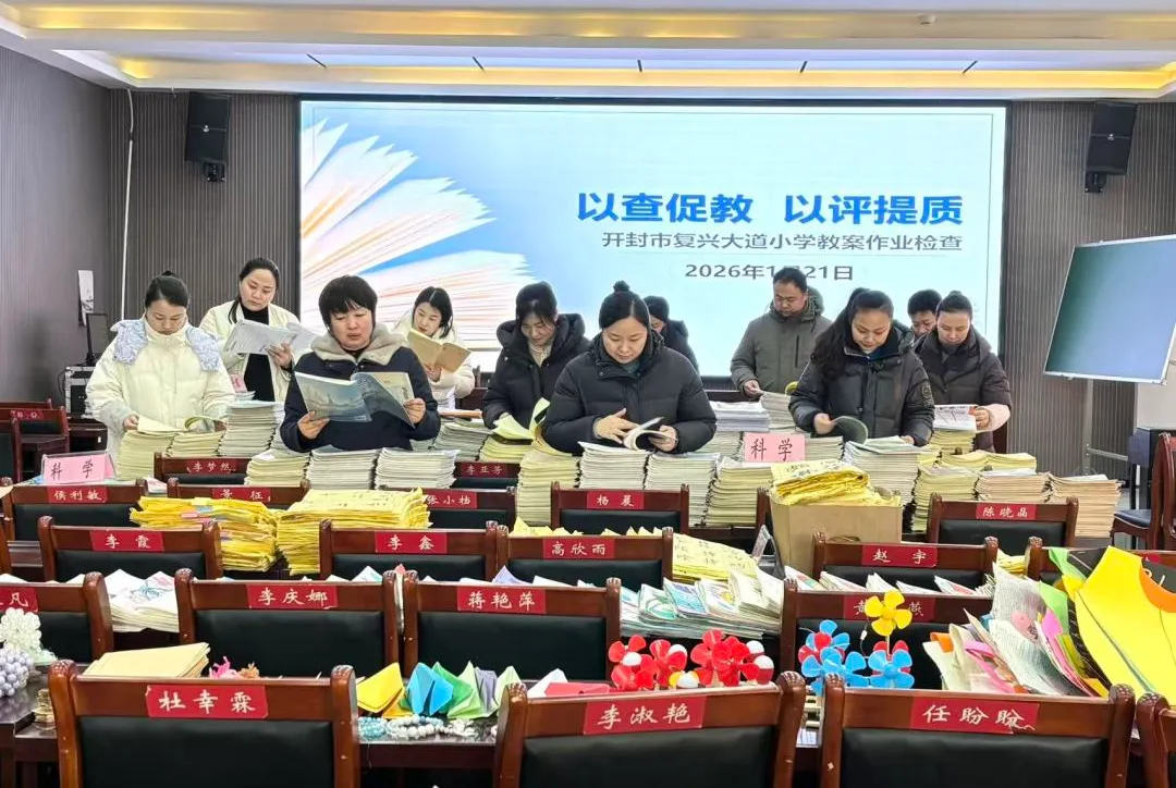 为持续深化“双减”政策落地见效,扎实推进教学常规工作精细化、规范化管理,全面提升教学质量,2026年1月21日,开封市复兴大道小学组织开展了本学期最后一次教案、作业检查。本次检查既是对本学期教学工作的全面核验,更是为夯实教学基础、保障期末教学成效保驾护航。