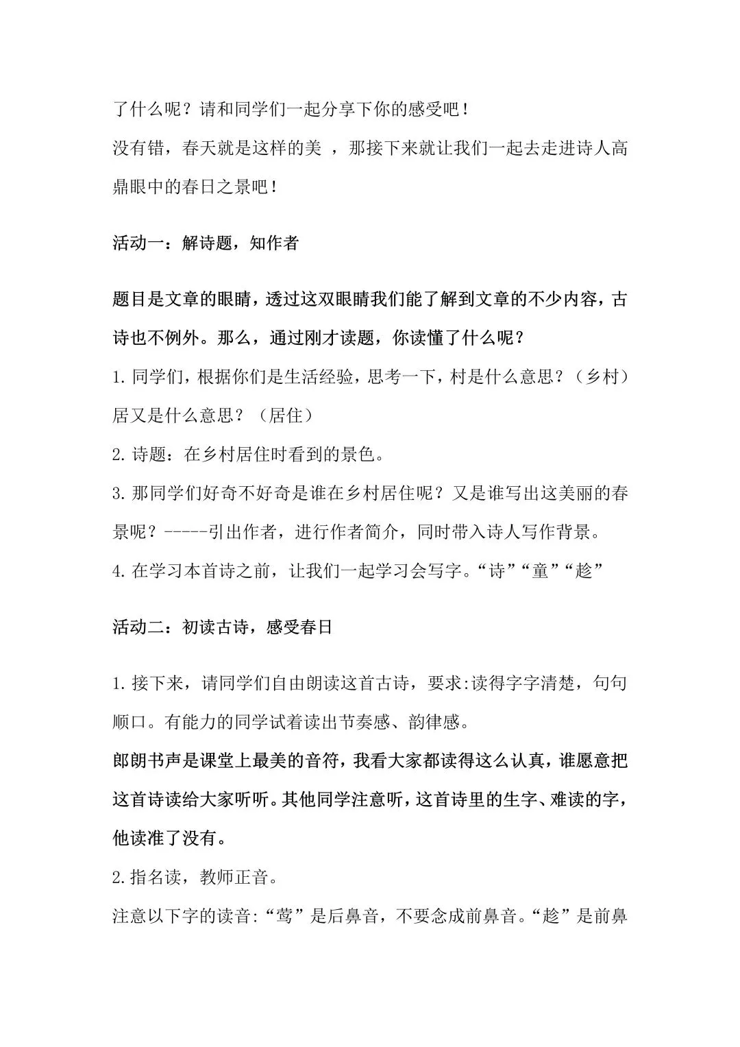>二下第一单元《村居》 | 教学课件+教案+逐字稿