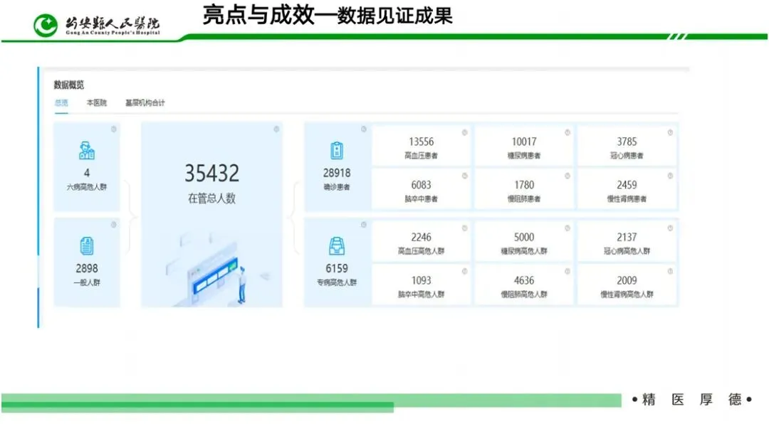 依托信息化平台,实现高危人群早筛、异常预警和规范随访,为县域慢病管理提供了可量化、可评估的数据支撑,体现了“管得住、看得见”的管理成效。
