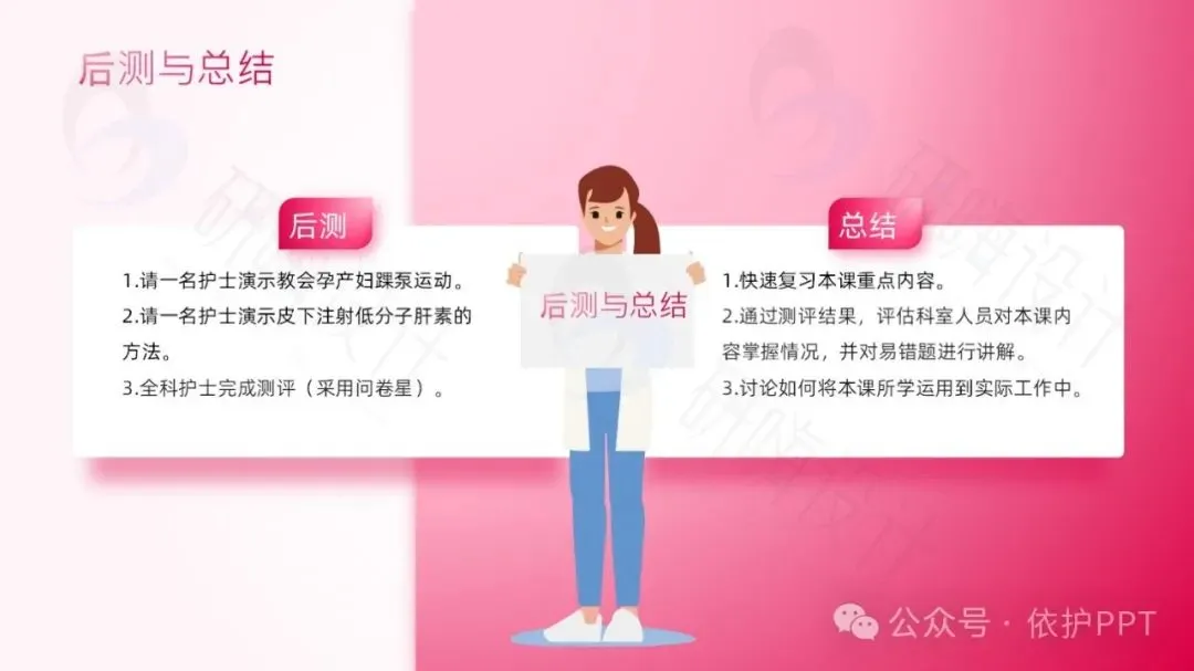 重点:正确评估VET风险,正确指导踝泵运动,正确注射低分子肝素。