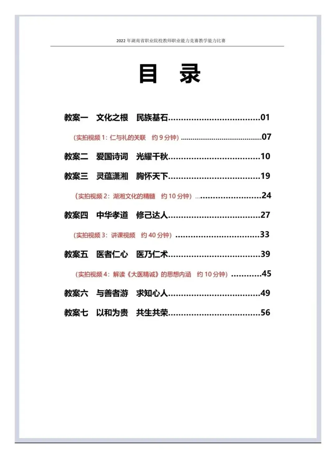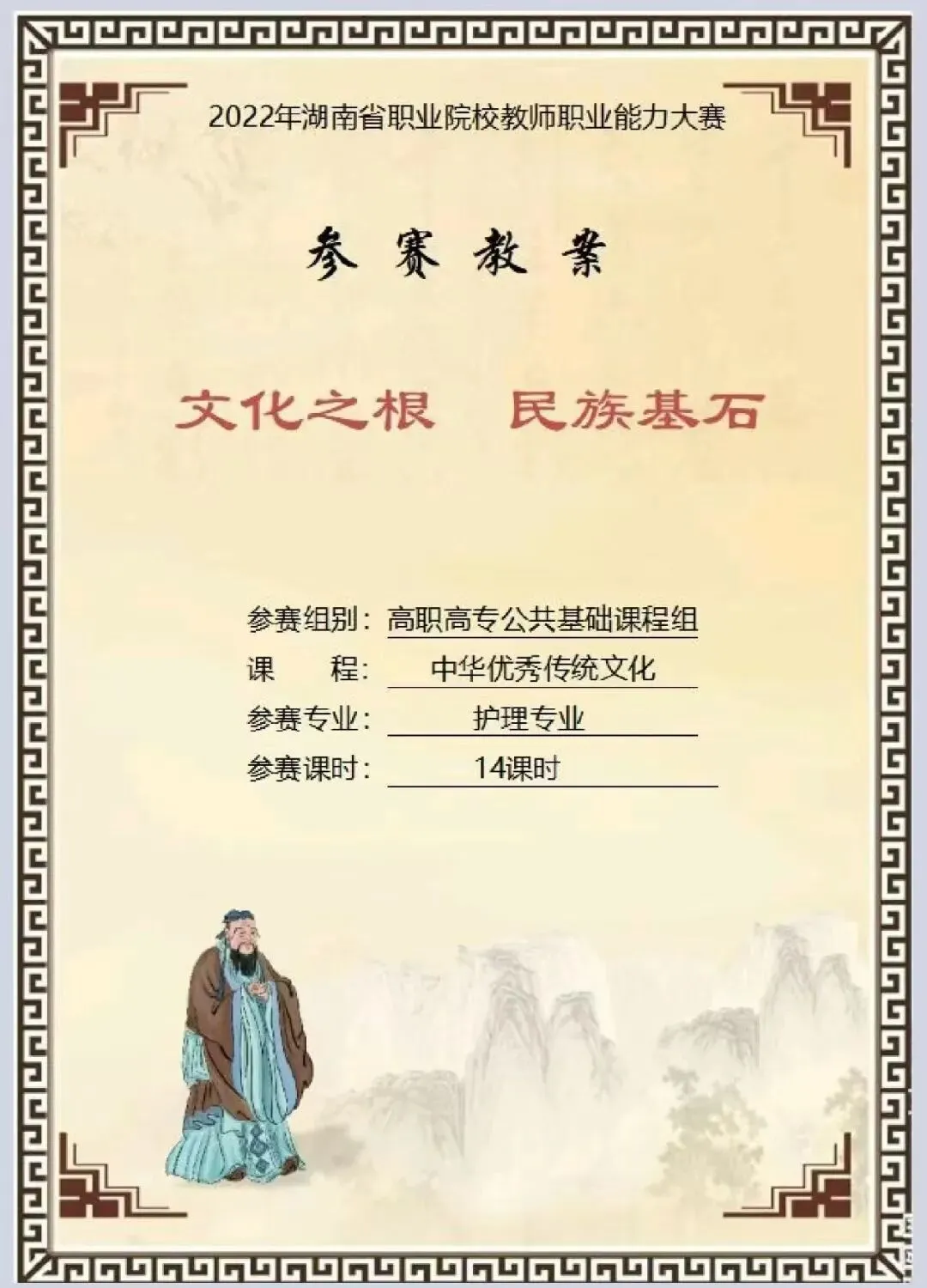 教学能力大赛比赛/传统文化/护理专业/语文/2022年湖南省职业院校教师职业能力大赛