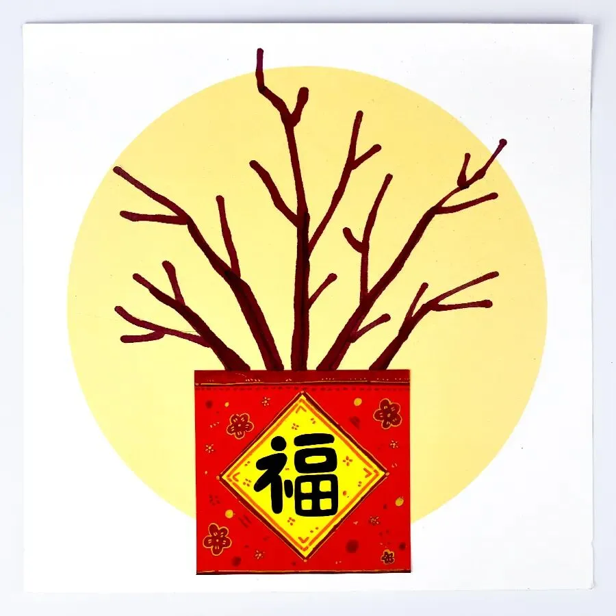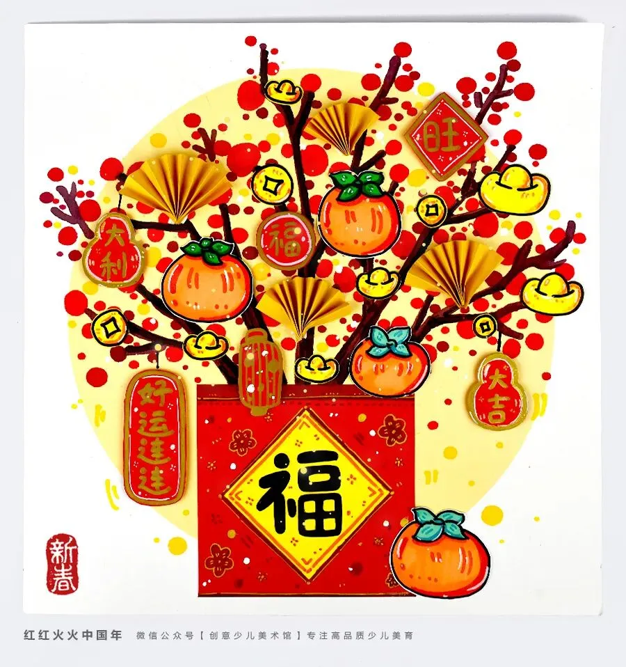 今天的美术课上,轮到小朋友们大显身手了!我们将化身为最懂美学的“小小花艺师”,一起绘制这盆福气满满、火红喜庆的年宵花!