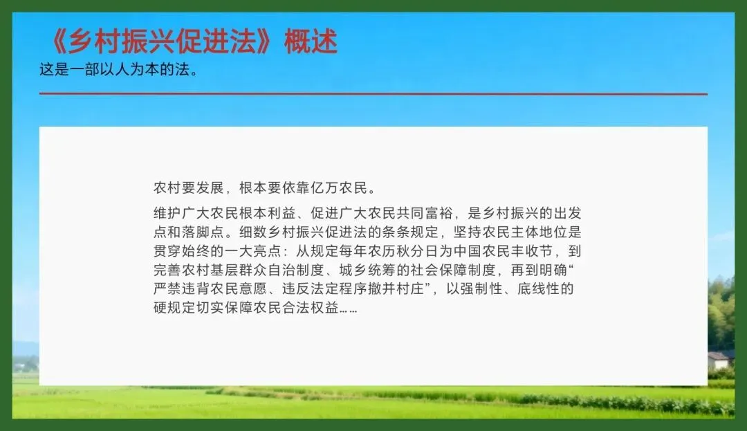 (二)它是一部以农民为中心、促进人的全面发展的振兴法