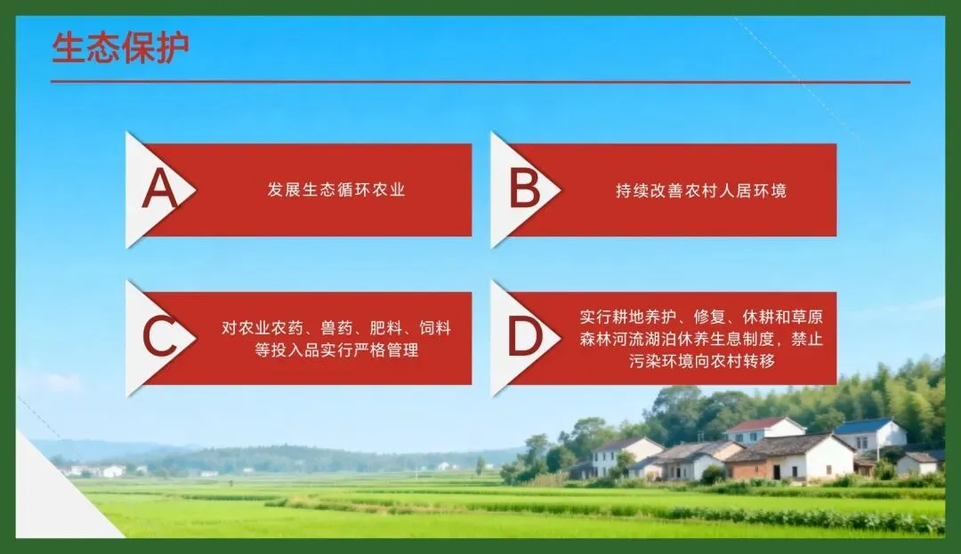2.守护生态屏障:乡村是生态系统的重要组成。法律设“生态保护”专章,第三十四条要求健全生态保护补偿机制,加强乡村生态保护和环境治理,建设美丽乡村。特别是第四十条,明确“禁止违法将污染环境、破坏生态的产业、企业向农村转移”,并详细规定了禁止向农业农村转移各类污染物,这为遏制“污染下乡”提供了直接的法律武器,与《中华人民共和国环境保护法》第三十三条关于保护农业环境的要求形成合力。