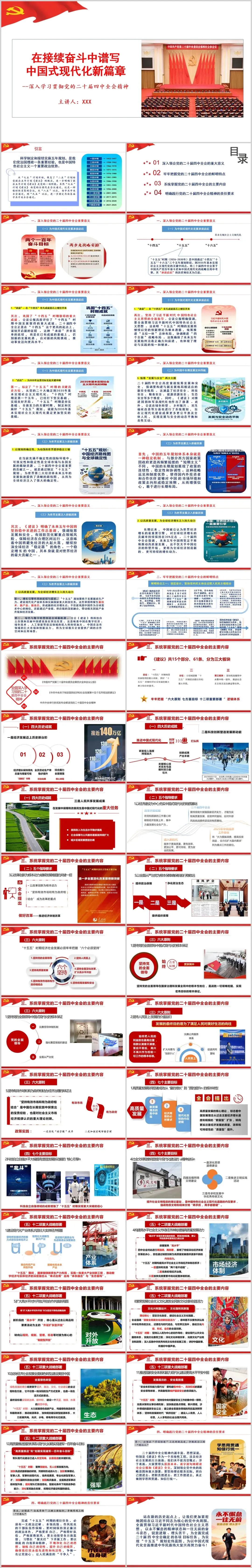 科学制定和接续实施五年规划,是我们党治国理政一条重要经验,也是中国特色社会主义一个重要政治优势。课件《在接续奋斗中谱写中国式现代化新篇章》对从重大意义、鲜明特点、主要内容等方面对党的二十届四中全会精神进行深入解读,并就将全会的精神实质转化为推动高质量发展的生动实践明晰方向路径。因篇幅有限,仅展示部分内容。