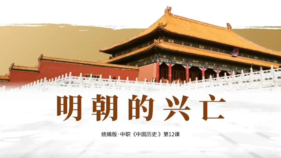 本期统编高教社版中职中国历史第12课《明朝的兴亡》,课件共39页。