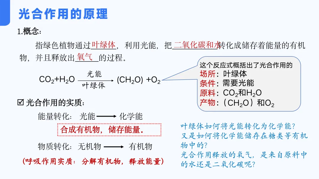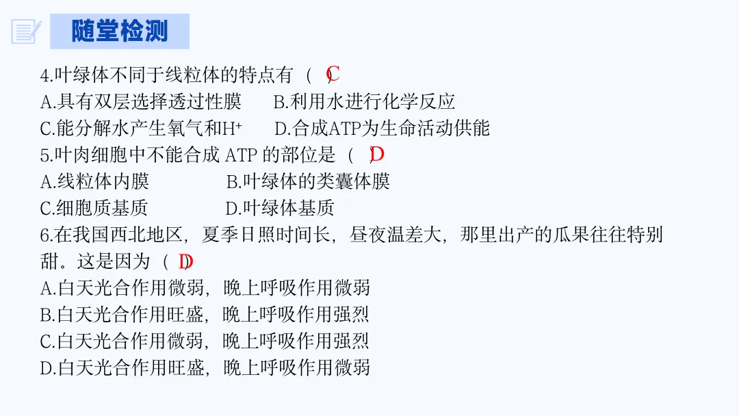 光合作用这节的课件几乎每节课后都要根据上课进度再进行修改,一直到最后一个课时结束才确定了现在这个版本。