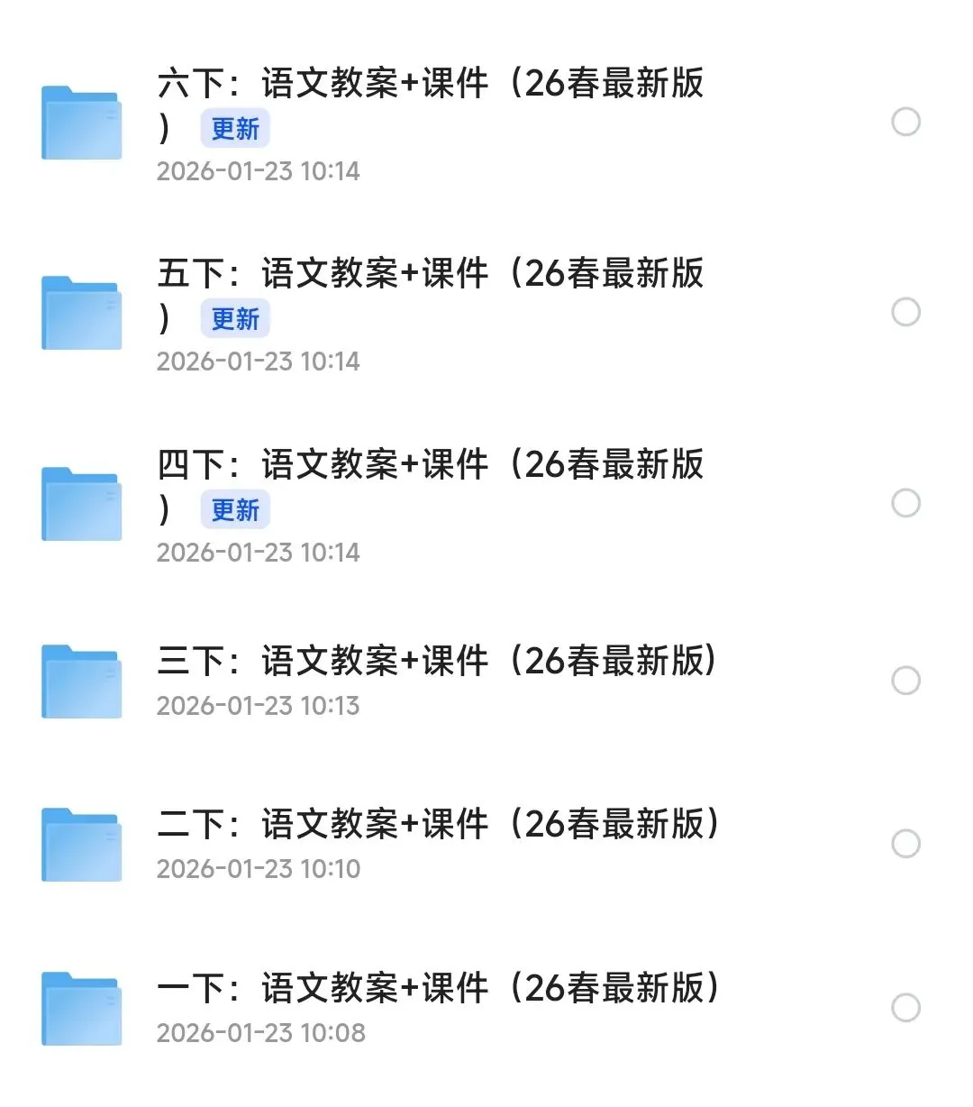今天铠爸要分享的是26春新统编版1-6年级语文下册教案+课件