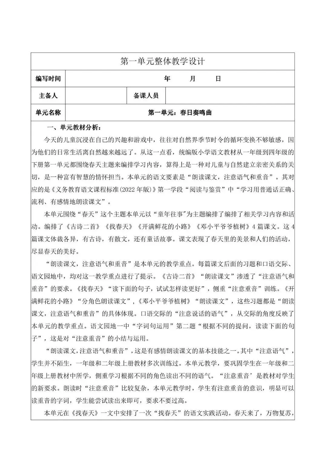 内含:教学计划大单元备课分课时教案 一册已更新完成 共118个课时 共268页 Word版本PDF版本