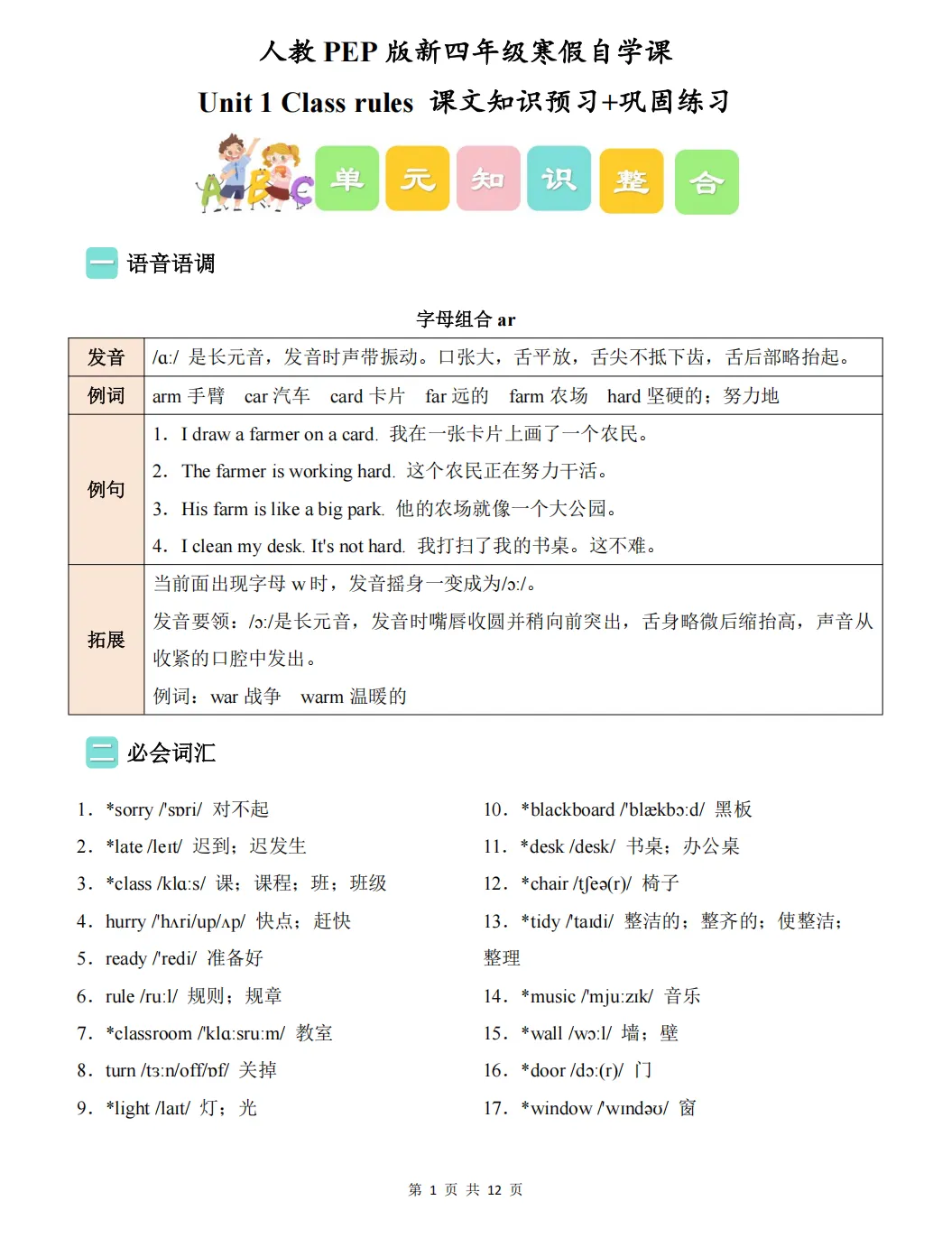 >2026春新人教英语四年级寒假讲义作业练习(附下载链接)