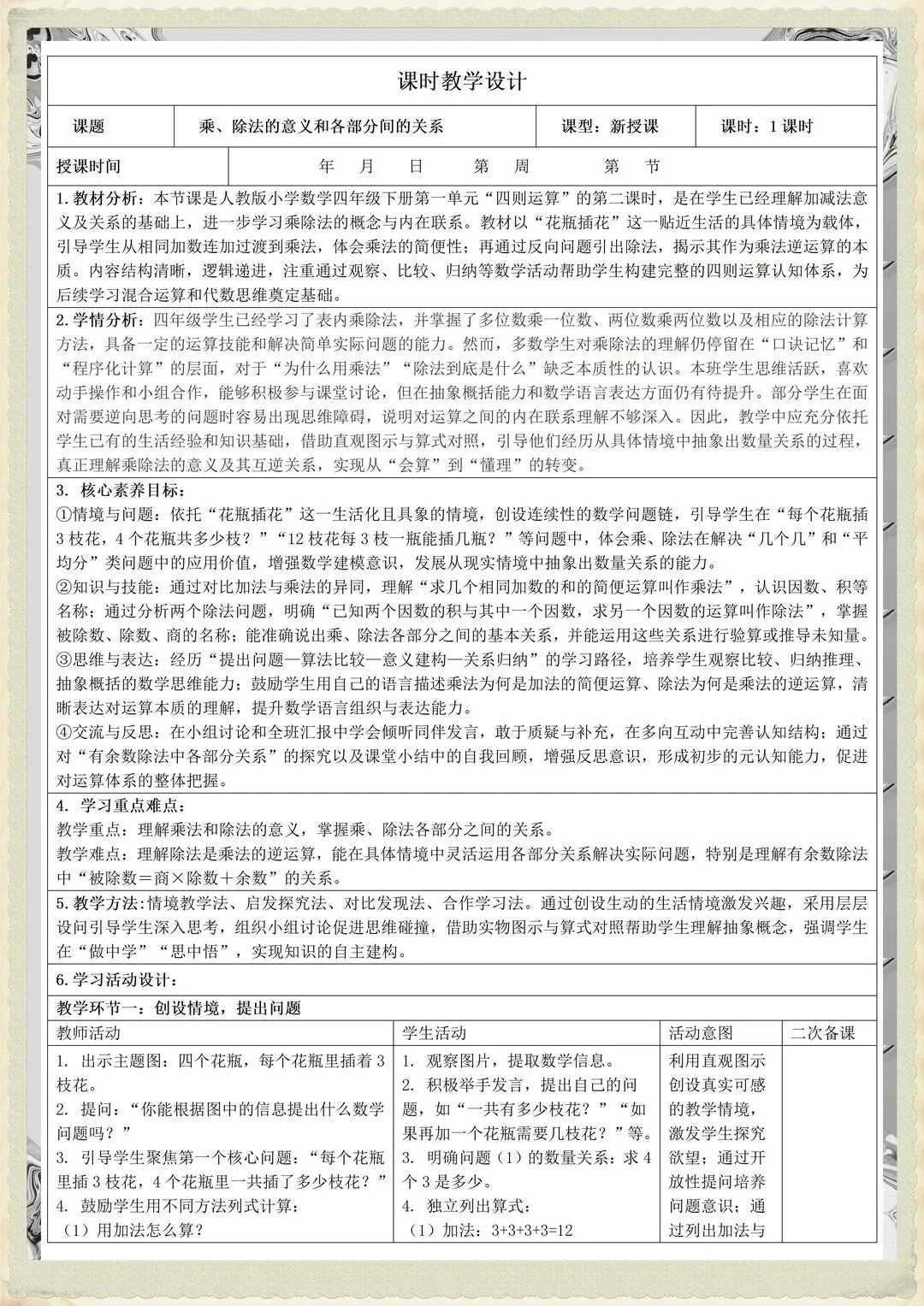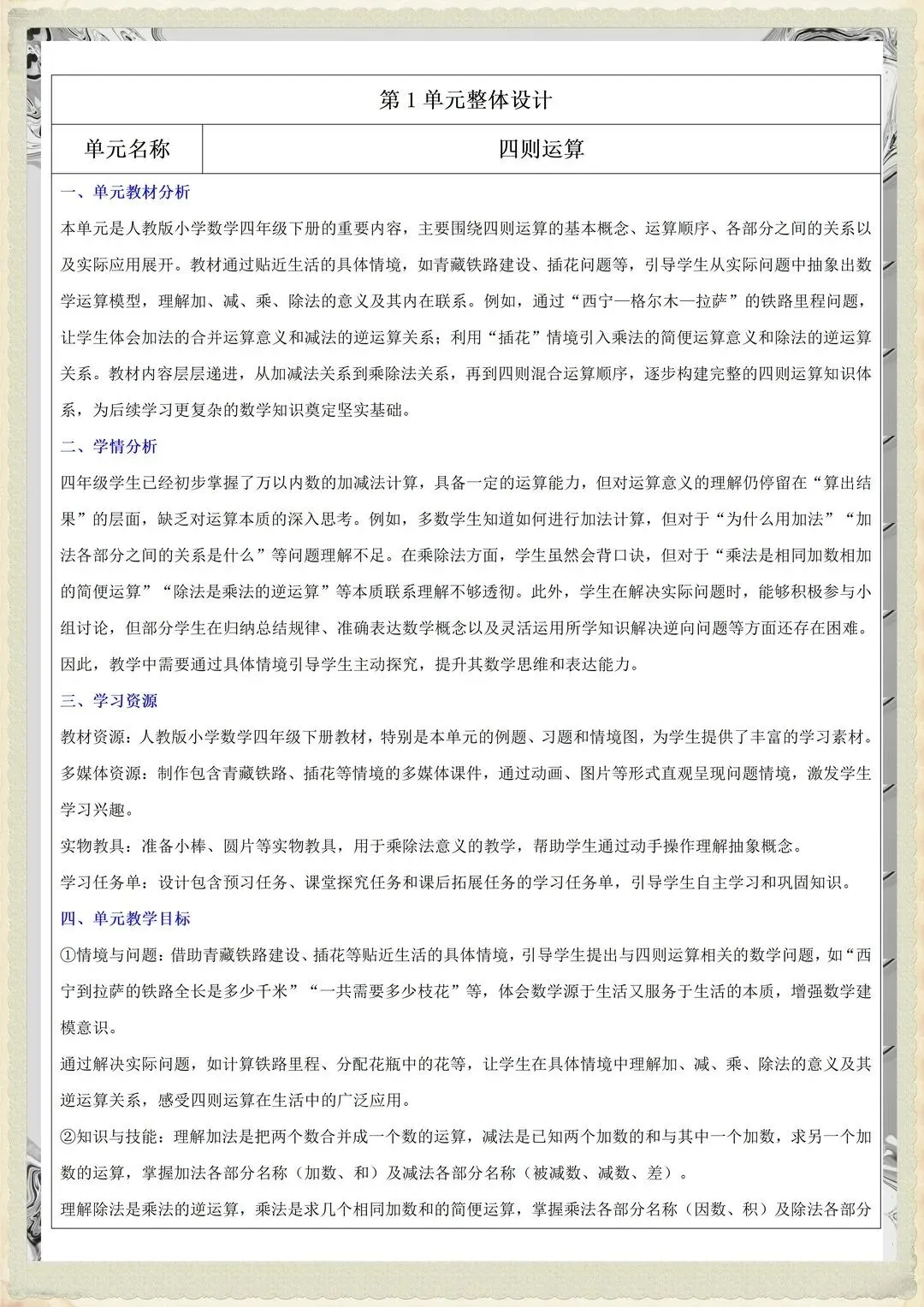 速看!26春学期四下核心素养教案开学能用到