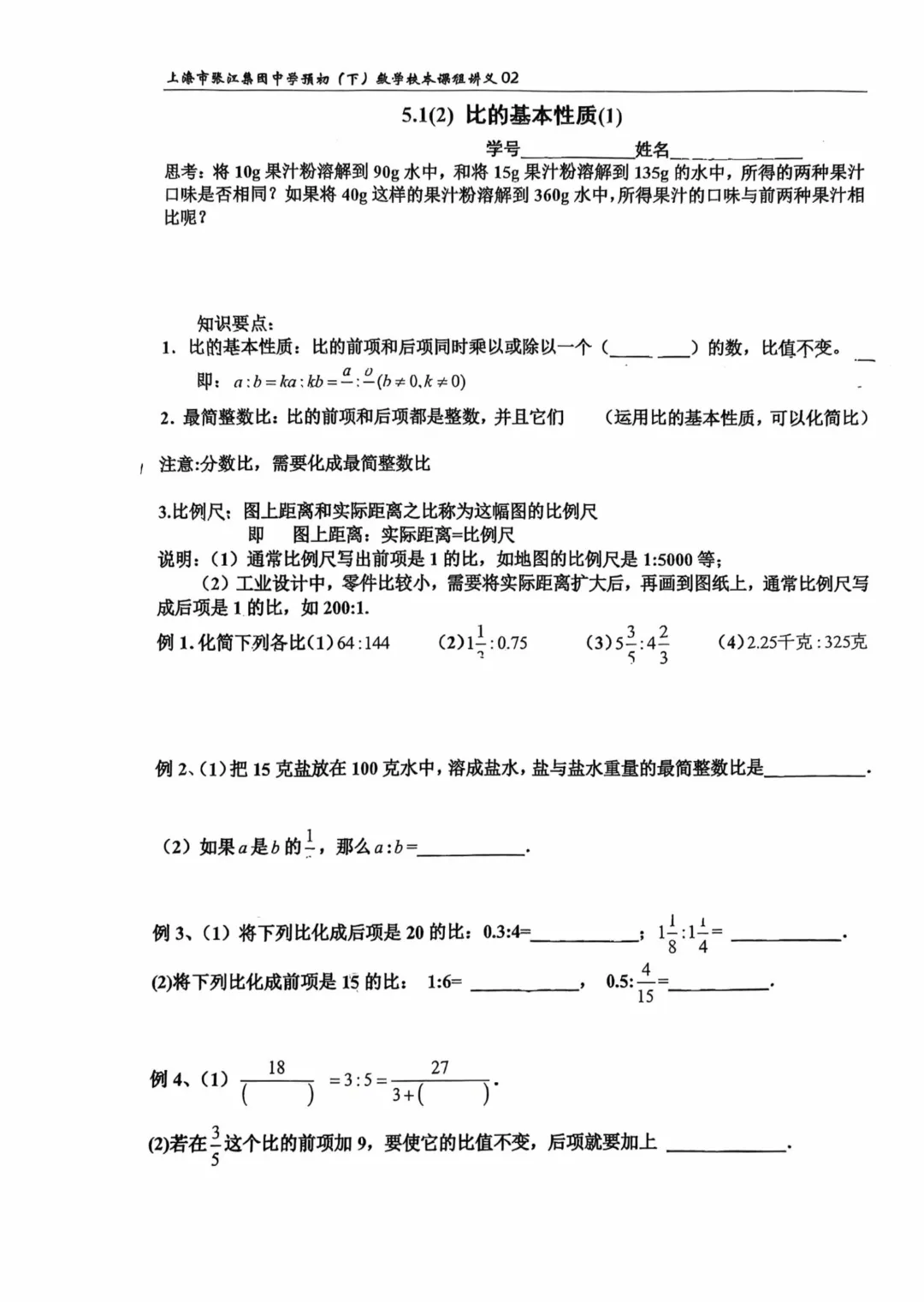 >6下数学,第5章“比和比例”(张集讲义02)