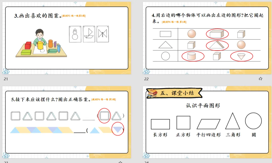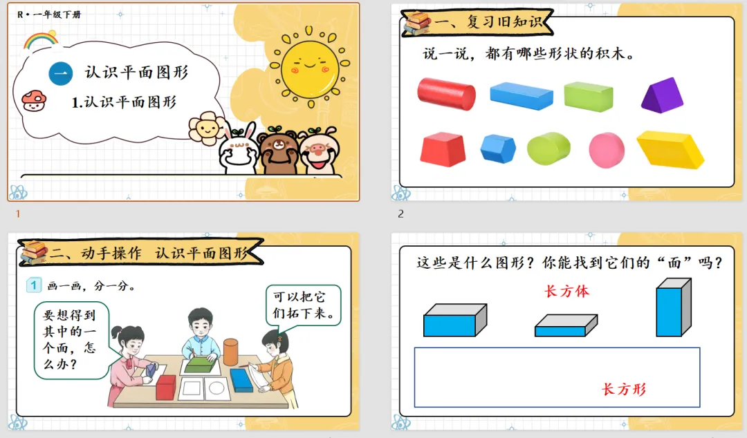 >【数学教案课件】新教材人教版小学数学一年级下册全册文本配套教案(含反思)《第1课时 认识平面图形》