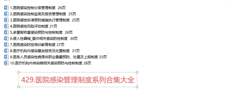 818.医院行政科室,医技科室各种总结及述职报告合集大全429.医院感染管理制度系列合集大全