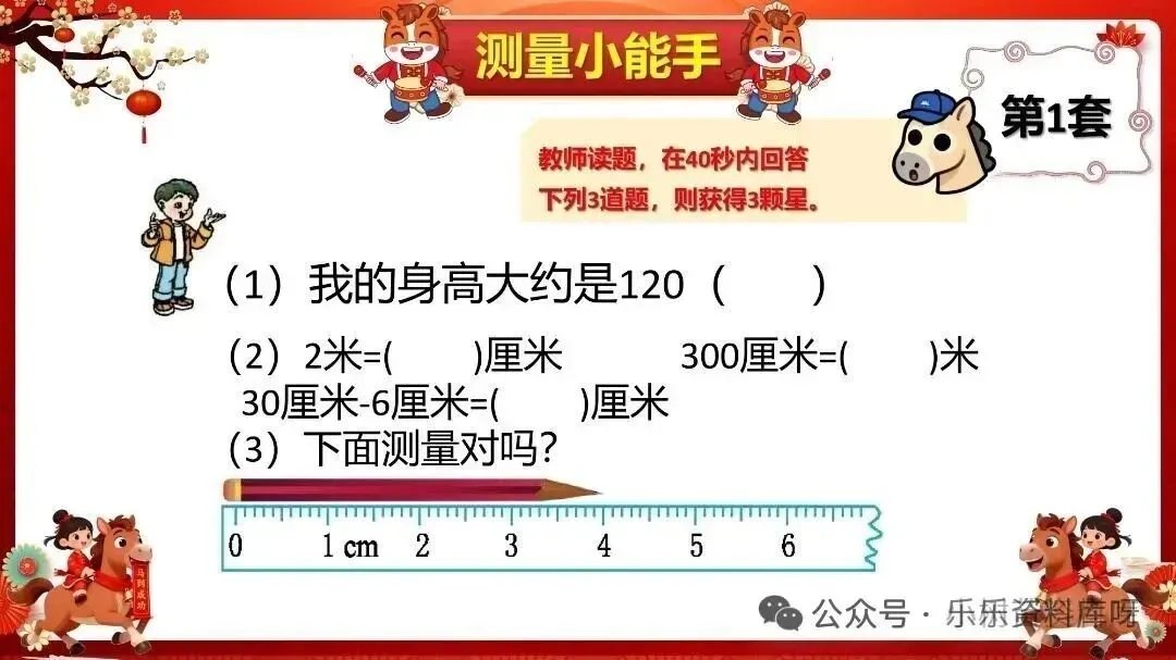 小朋友们,你们好,一学期即将结束了,今天邀请小朋友们来到数学乐园,老师设置了4道不同的关卡:分别是口算小达人、方向小辨手、测量小能手、应用小天才,接下来我们一起去到不同的关卡进行闯关吧,相信你们一定能挑战成功!第一关:口算小达人(3颗星)