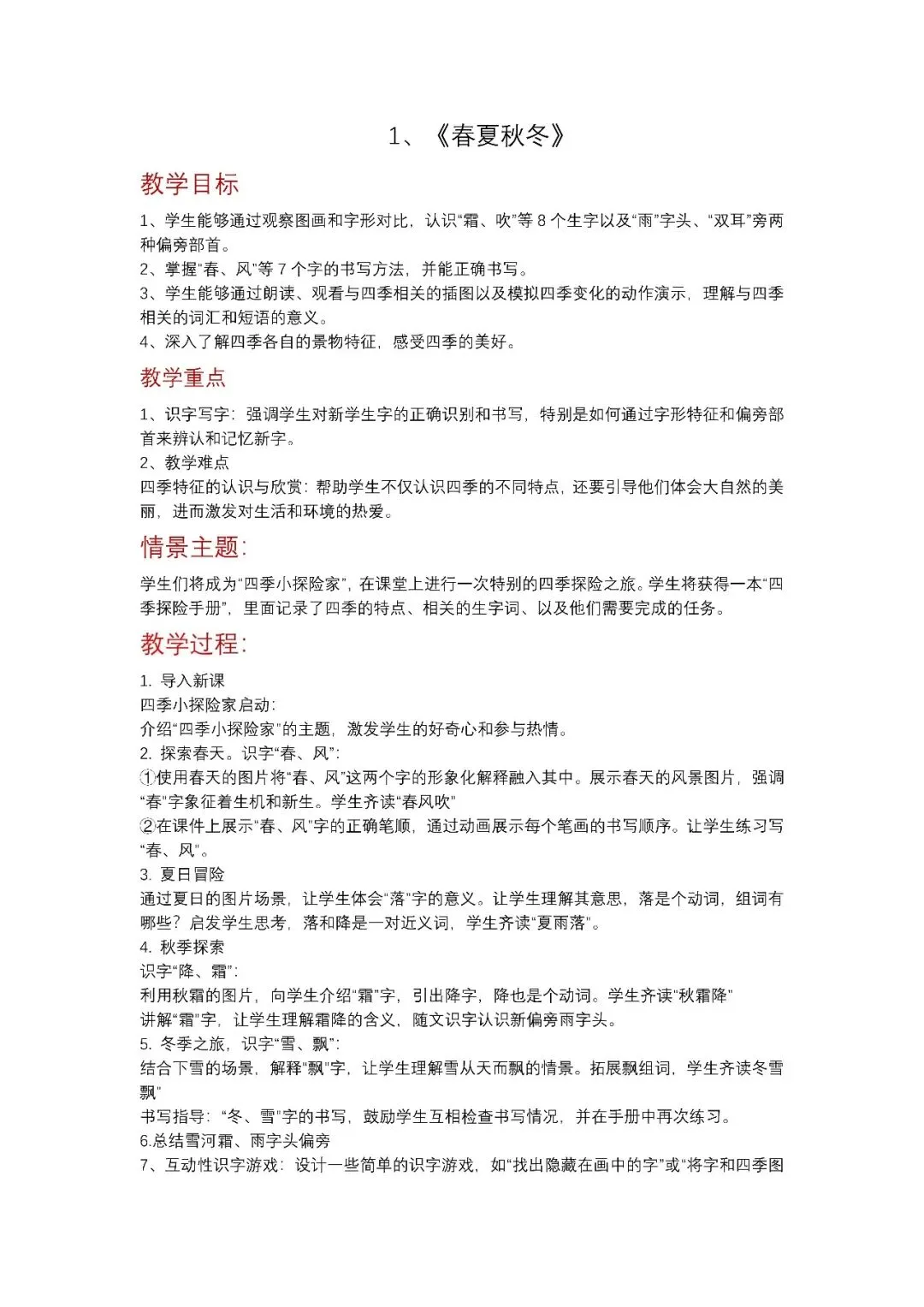 >一下第一单元《春夏秋冬》 | 教学课件+教案+逐字稿