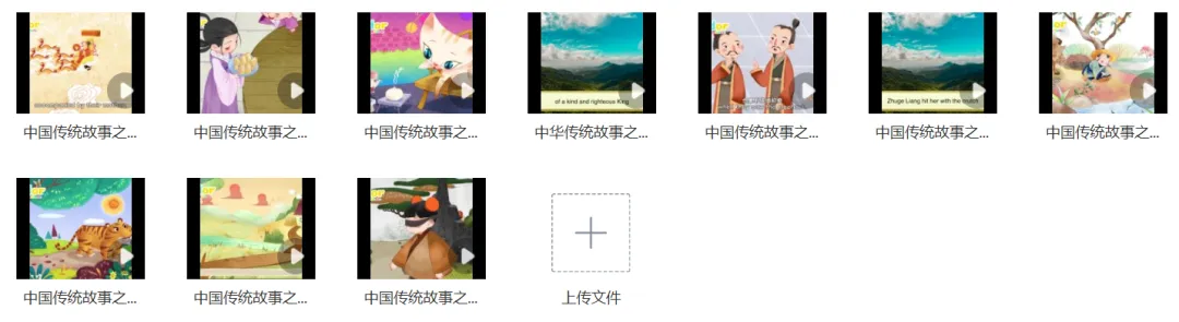 传统故事视频共计10部,包含:曹冲称象、后羿射日、狐假虎威、孔融让梨、神笔马良、司马光砸缸、田螺姑娘、十二生肖等。