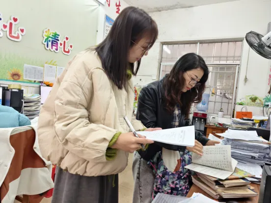 英语组在农雪煜副主任带领下,有序地开展检查工作。据检查员反馈:该组的教师教案、作业批改规范且高效。罗健、廖玉好等教师的教案细节完备,从教学目标拆解到教学活动设计,再到针对班级学情的个性化调整,均留下清晰痕迹;作业批改中,教师们采用统一规范的批改符号,反馈及时高效,常用“Good/Great”等鼓励性语言传递教育温度。