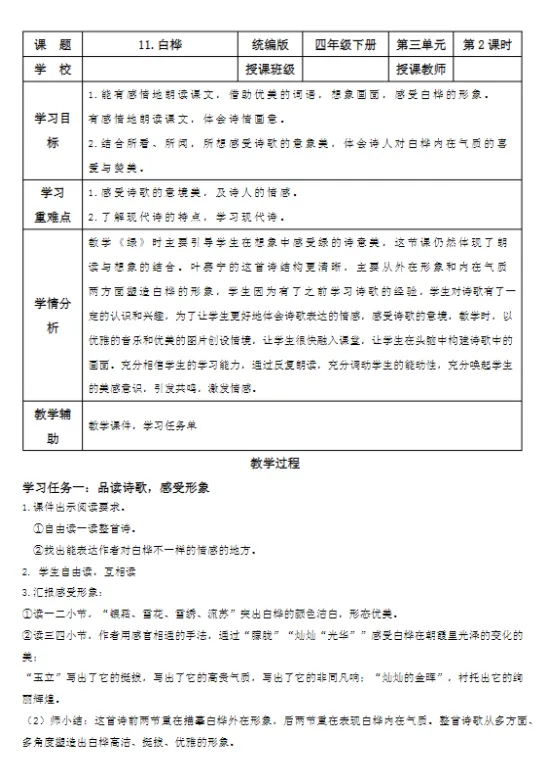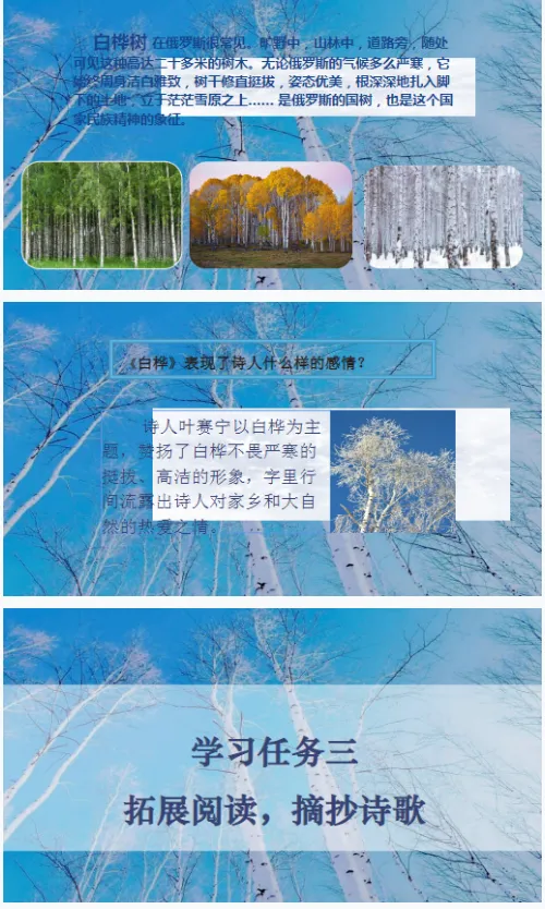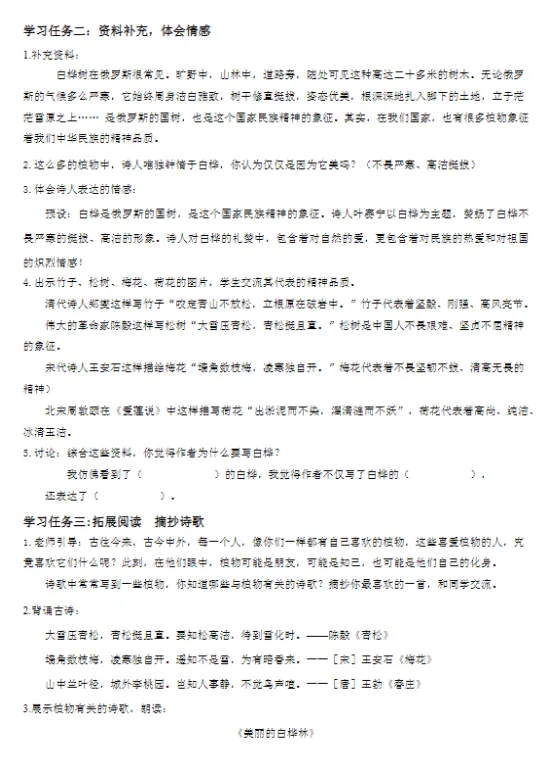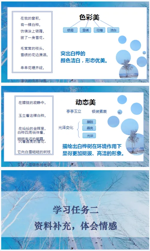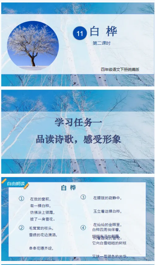 【精品课件】四年级下《白桦》课件+教案+学习单+分层作业