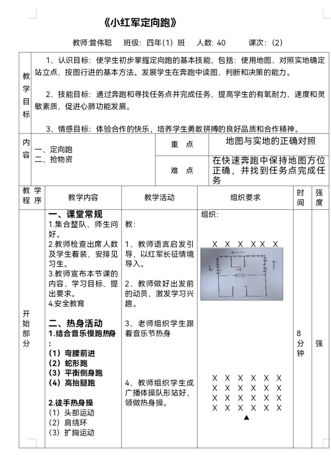 新的体育课程标准中提出“跨学科主题”学习活动,强化学科间的相互关联,重在从学科立场走向教育立场,突出素养立意、育人导向,强化学科实践及跨学科主题学习。本课学生之间分组相互配合,根据地图对照实地确定任务点位置,并完成每个任务点的任务,结合德育等,创设让学生化身为小红军训练、战斗精神的场景提高学生的奔跑、反应能力、团队配合能力等,同时让学生感受先辈们为我们国家和敌人搏斗的战斗精神,培养学生感恩之心、爱国之情和顽强拼搏的意识。