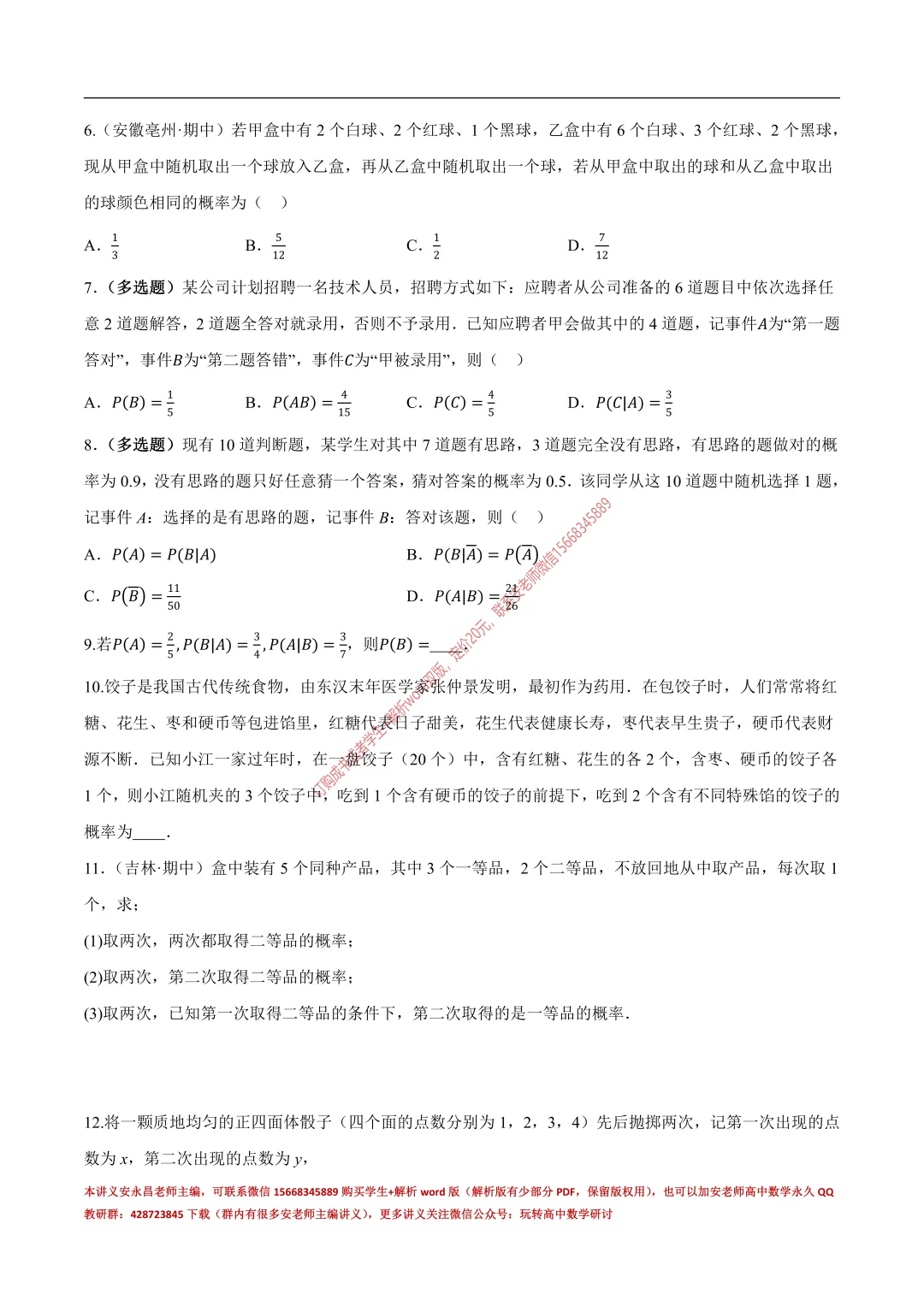 我们旨在编写最实用、最全面的教学讲义,满足各个层次老师教学和学生学习使用,高一高二同步系列编写4个版本(人教A版、人教B版、苏教版、北师大版)的各阶段学习所需讲义,高三编写新高考学习所需的各阶段讲义,一直以来各位老师、家长、学生对我们的讲义都很认可,欢迎加入我们一起研讨、交流教学和学习中的问题,购买word学生版+解析版讲义请联系微信15668345889。