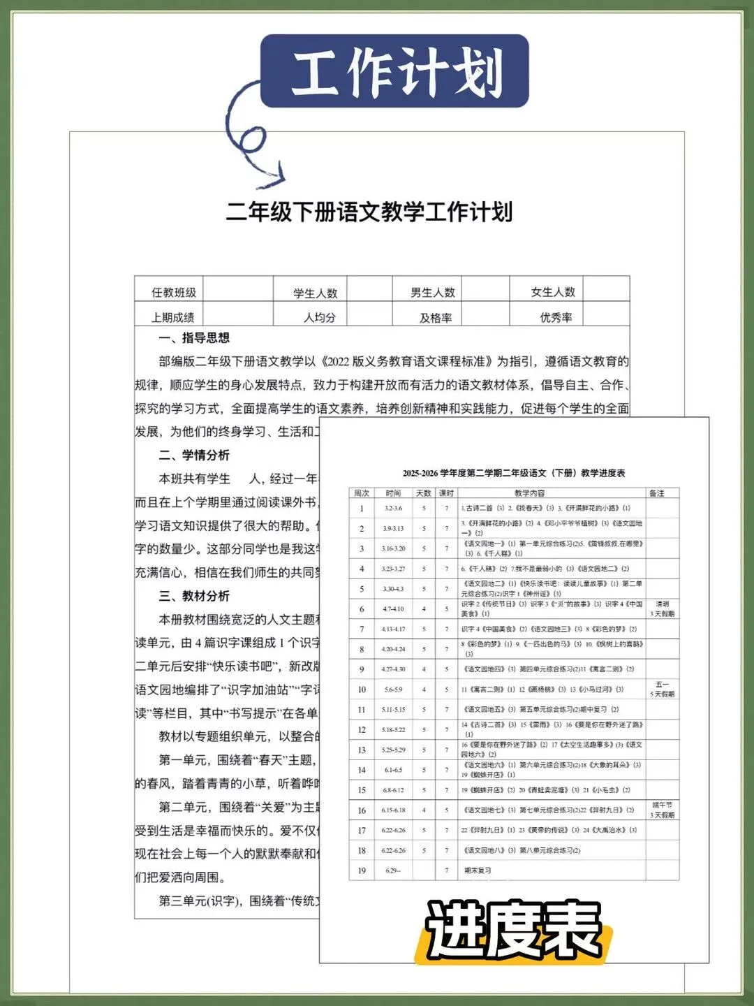 新教材 语文二年级下册核心素养教案+课件PPT+教学计划(人教2026春),可下载编辑!