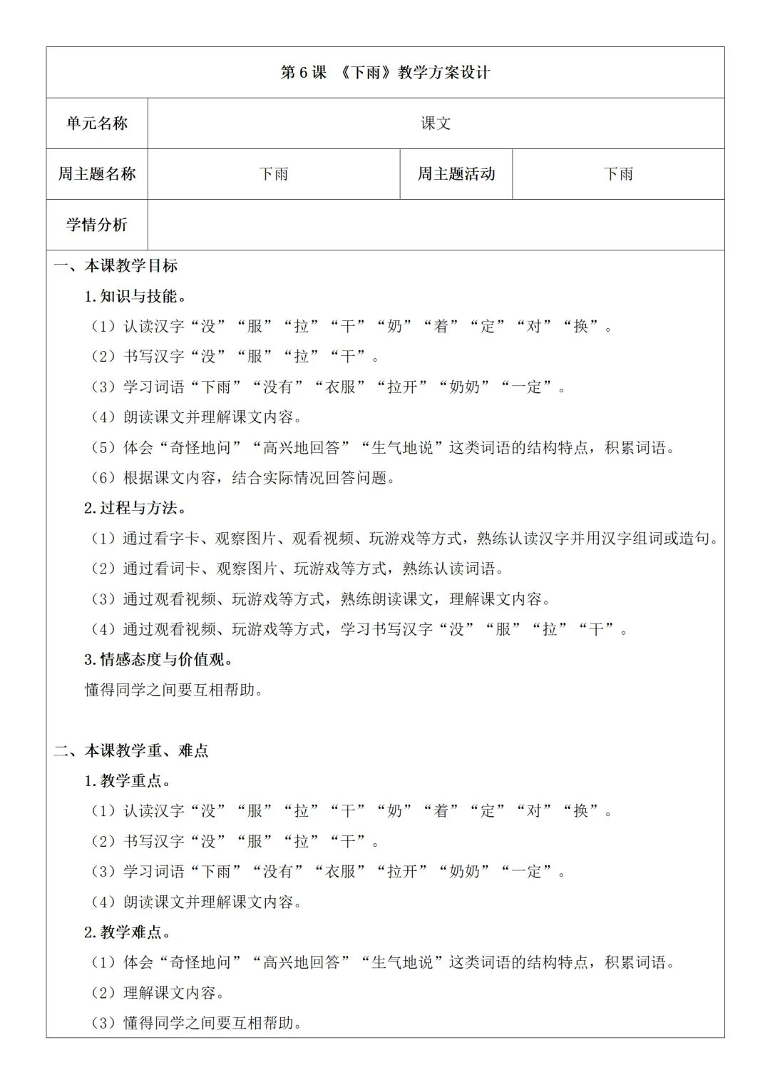 人教版《培智生活》语文六年级下册教案,可下载编辑!