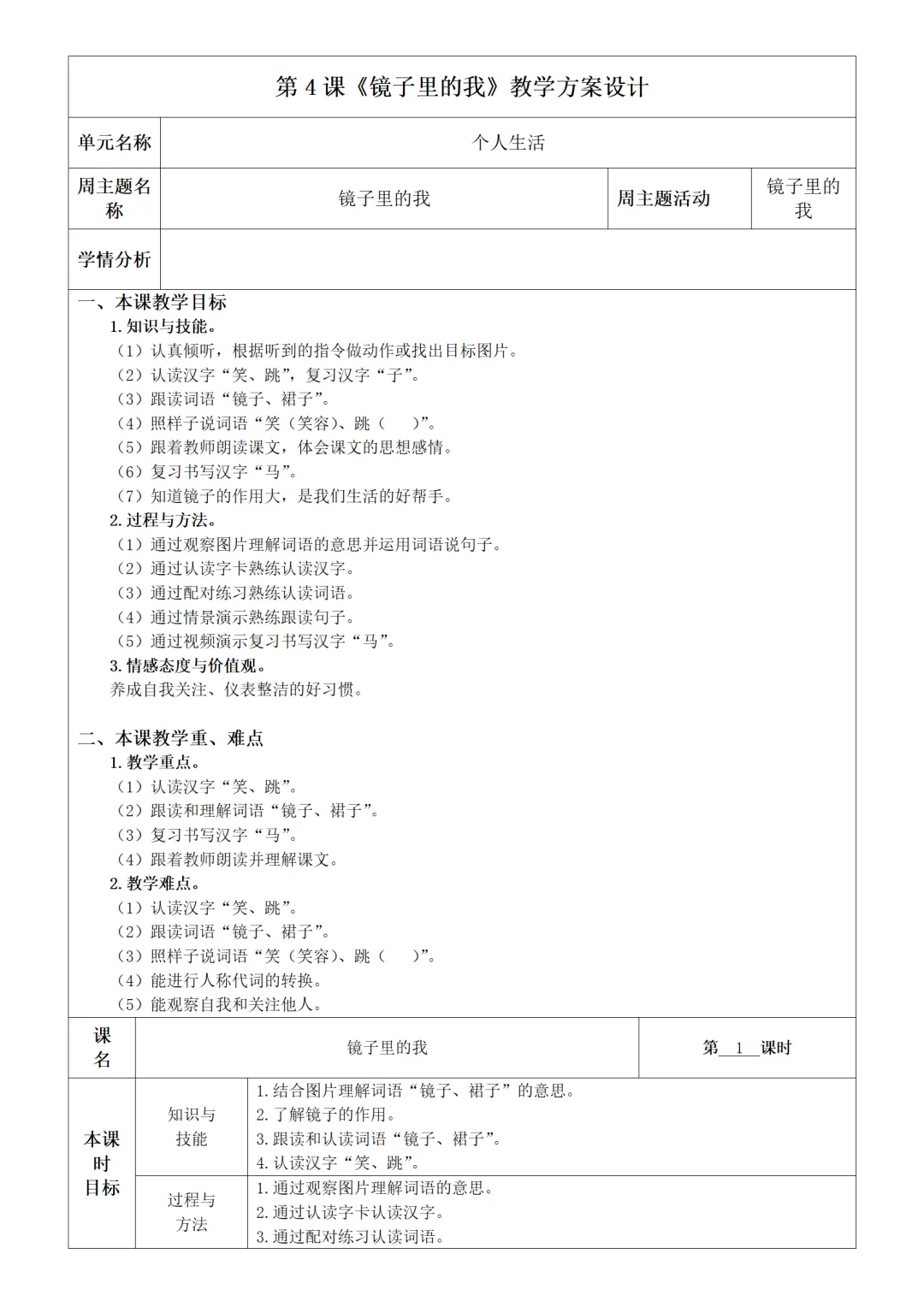 人教版《培智生活》语文一年级下册教案,可下载编辑!