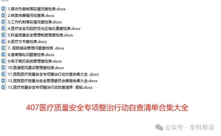 407医疗质量安全专项整治行动自查清单合集大全