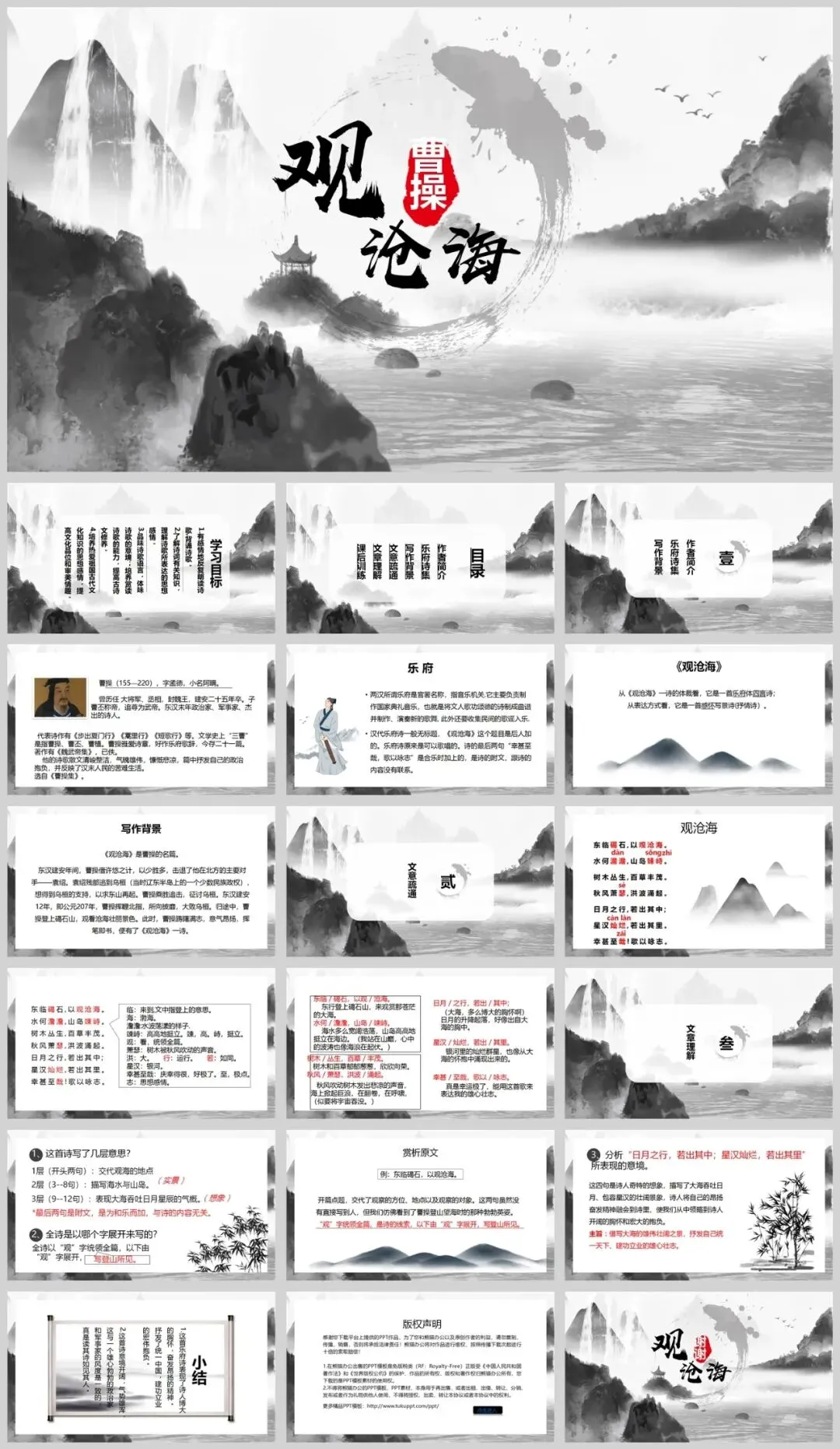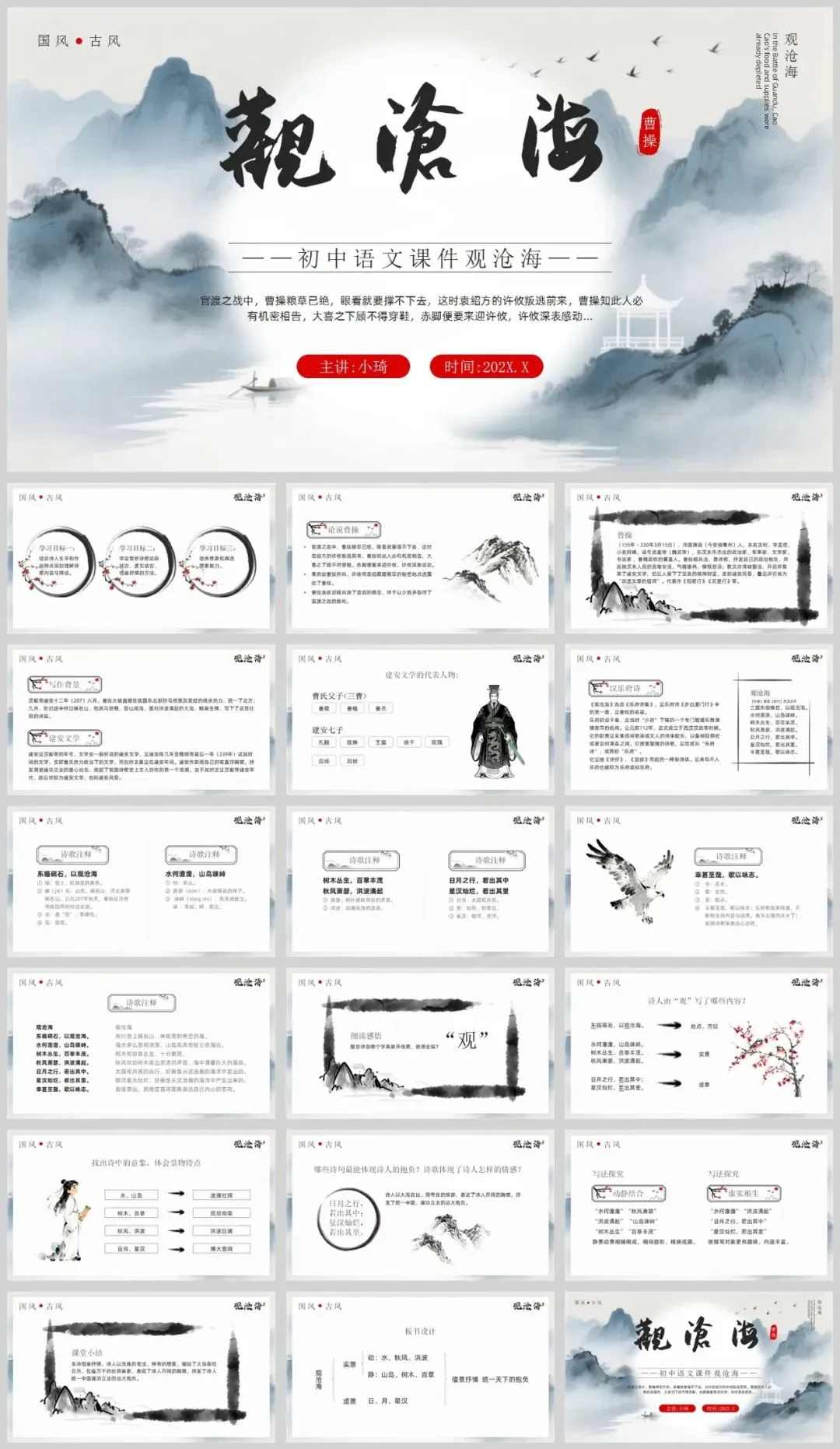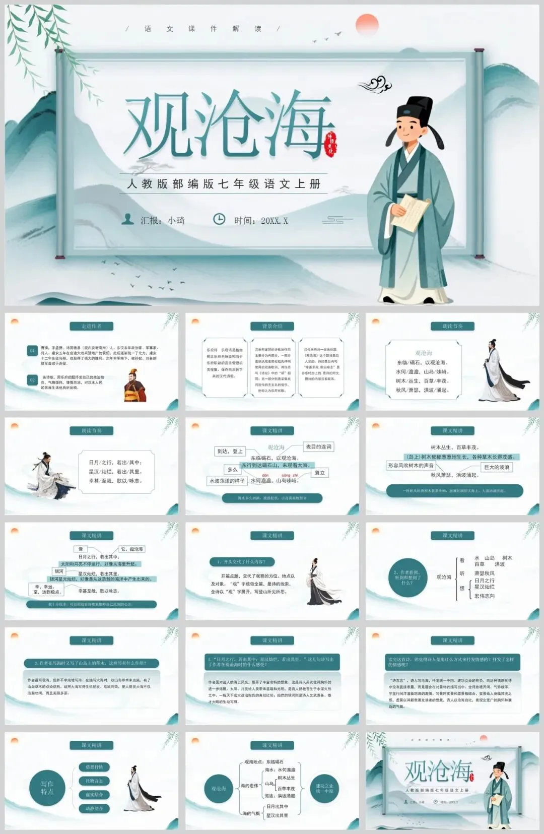 【2195期】《观沧海》初中语文课件PPT模板:让古诗文教学焕发新活力!