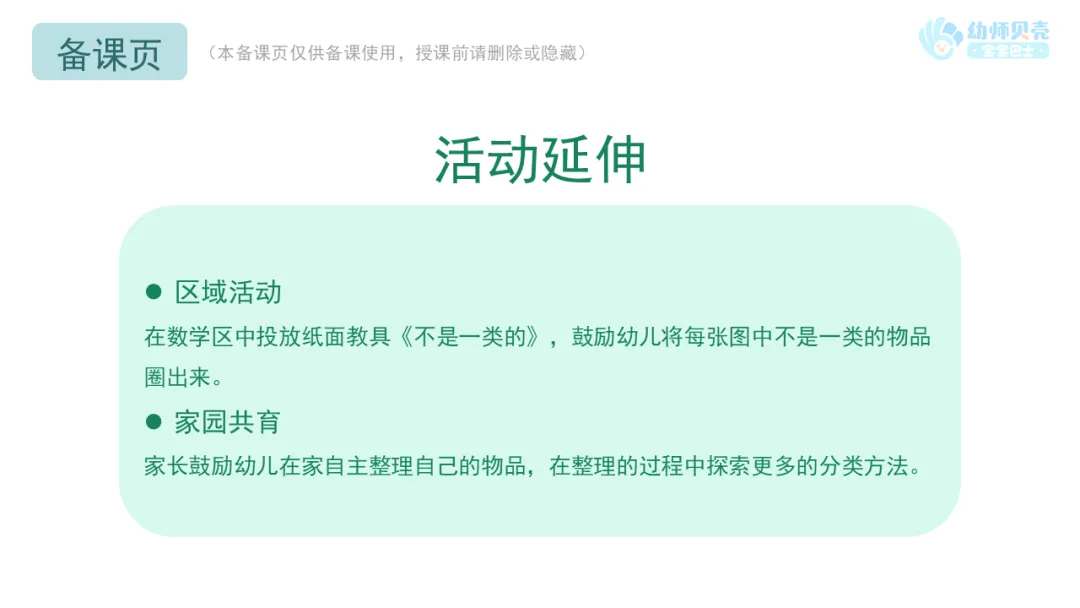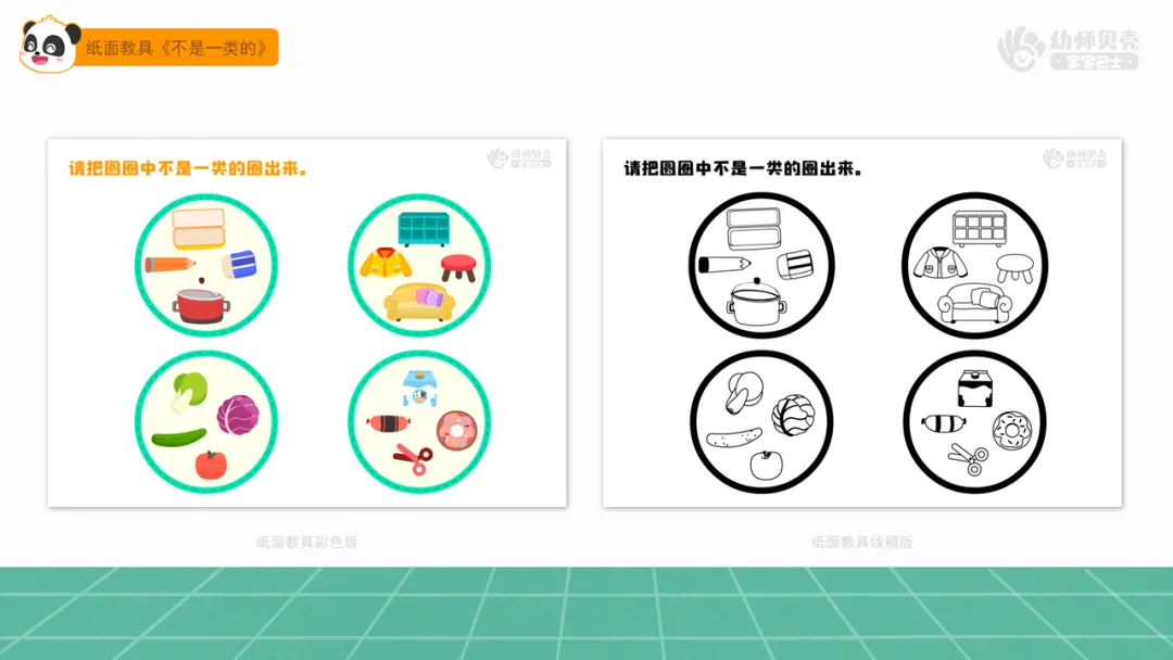 l纸面教具:《整理超市》《不是一类的》。